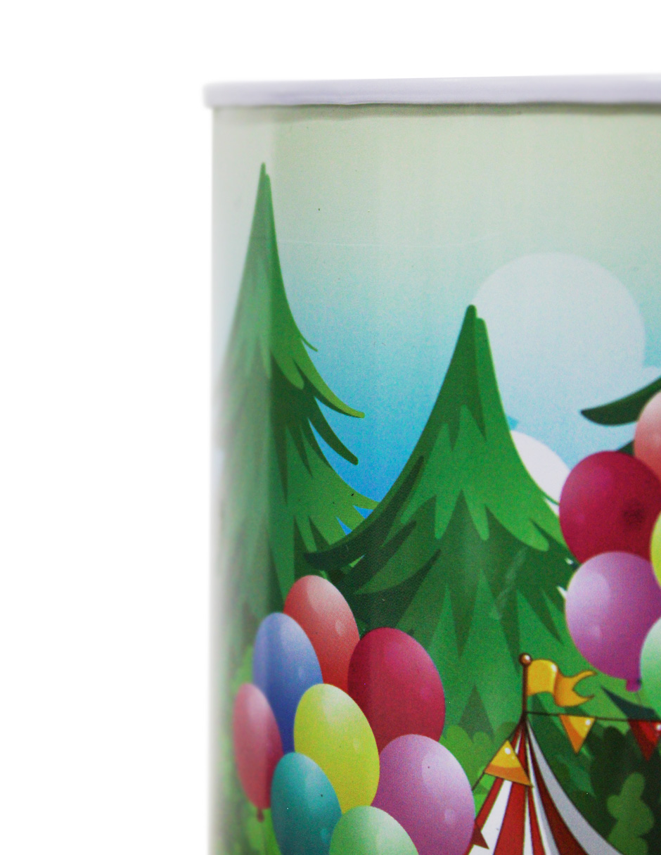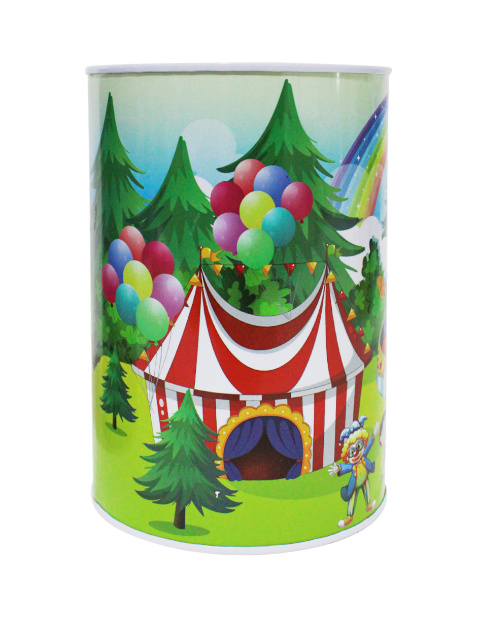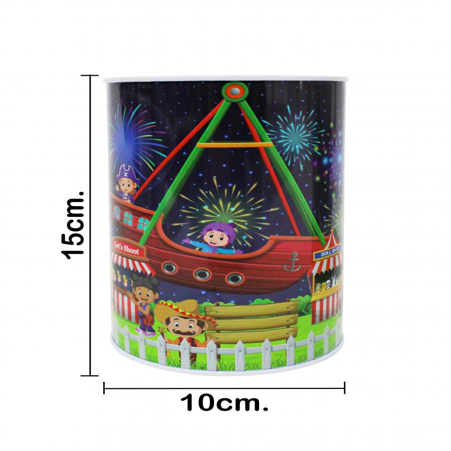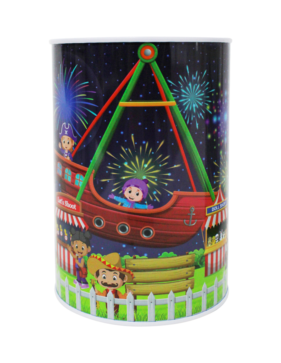 Alcancía de metal estampado feria de 10x10x15cm