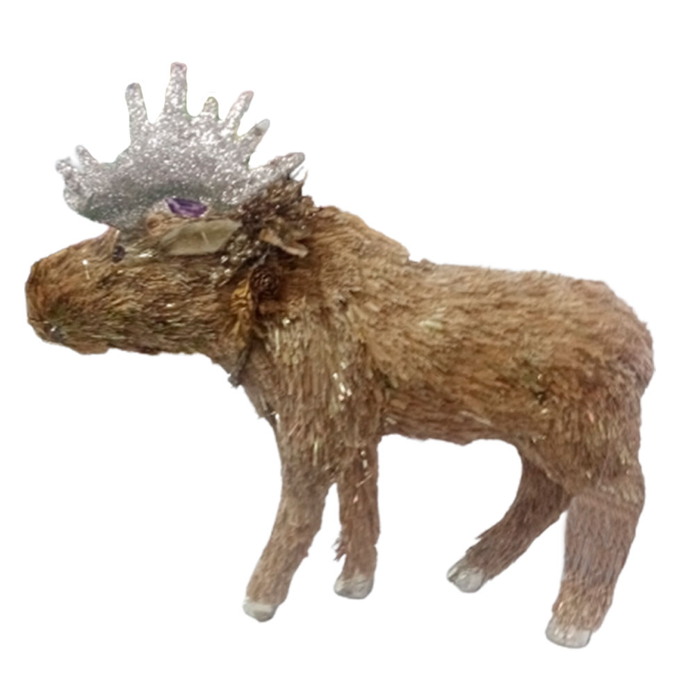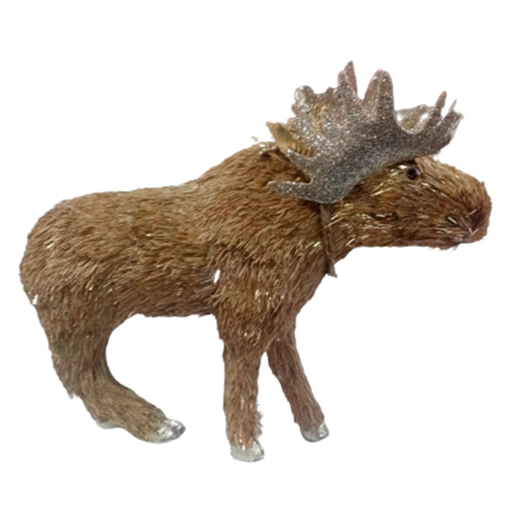Alce de fibras naturales con diamantina dorada de 45x38cm