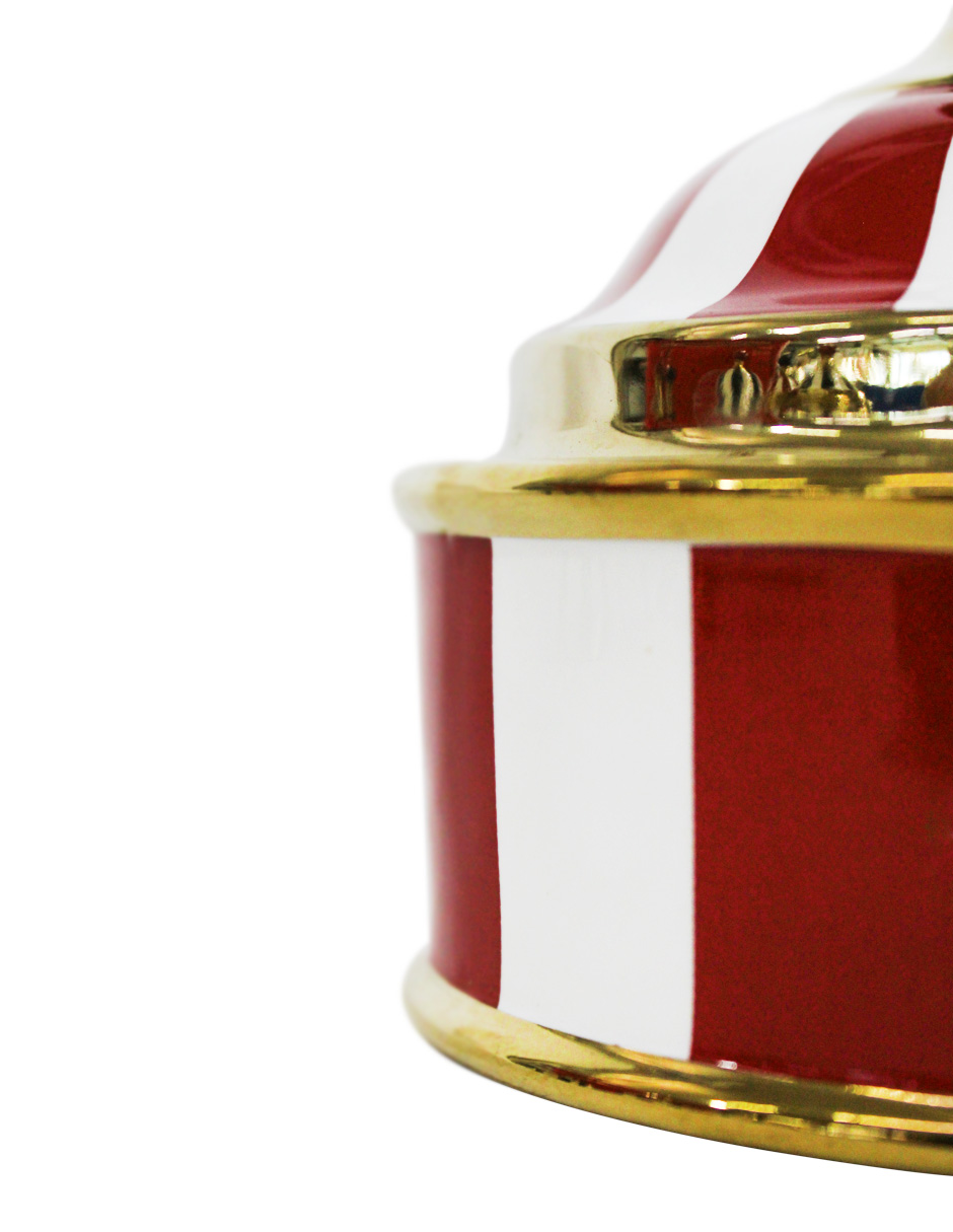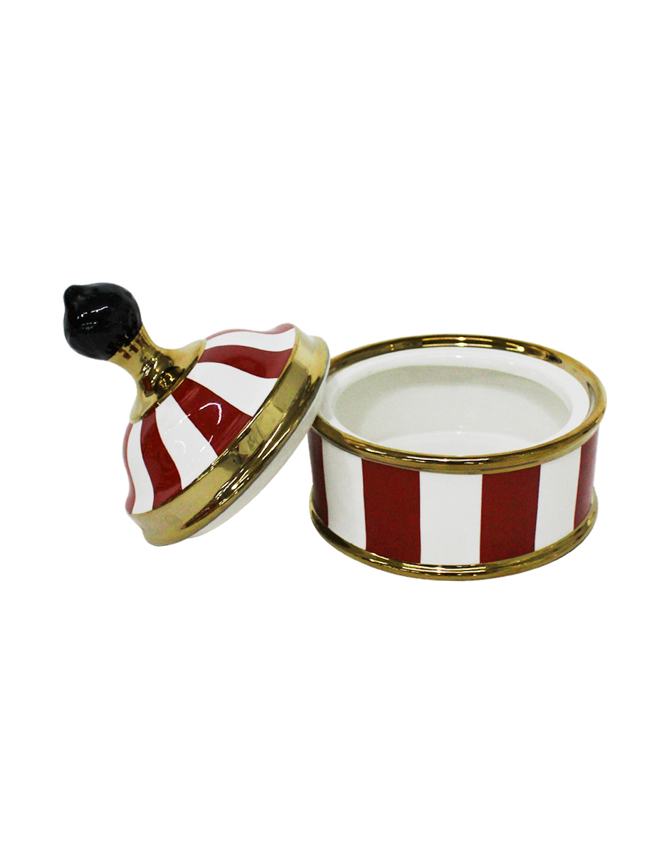 Azucarera de porcelana rojo con blanco de 11x11x13 cm