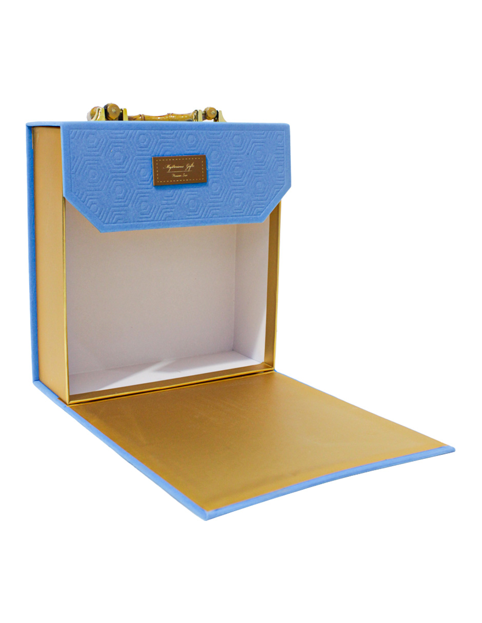Bolsa de carton estampado azul con asa diseño bambu de 21.5x8x23cm8x21.5x23cm