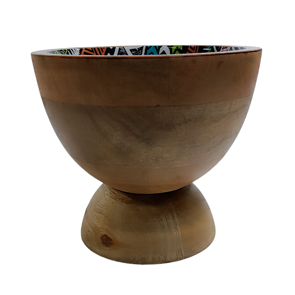 Bowl de madera con base estampado etnico de 15x15x13.75cm