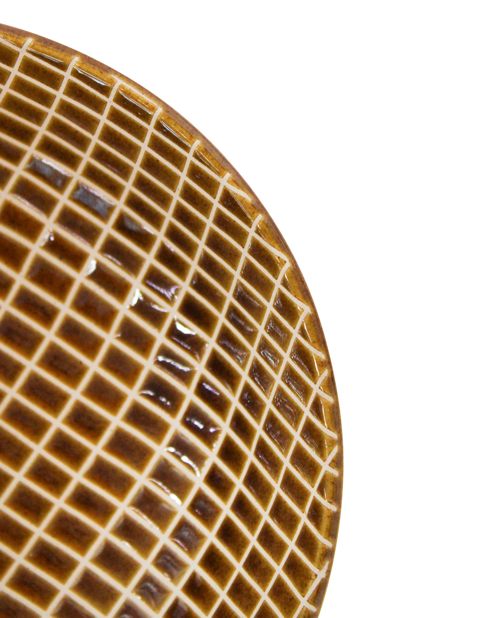 Bowl de porcelana cafe diseño cuadros de 19.5×19.5×5.4cm