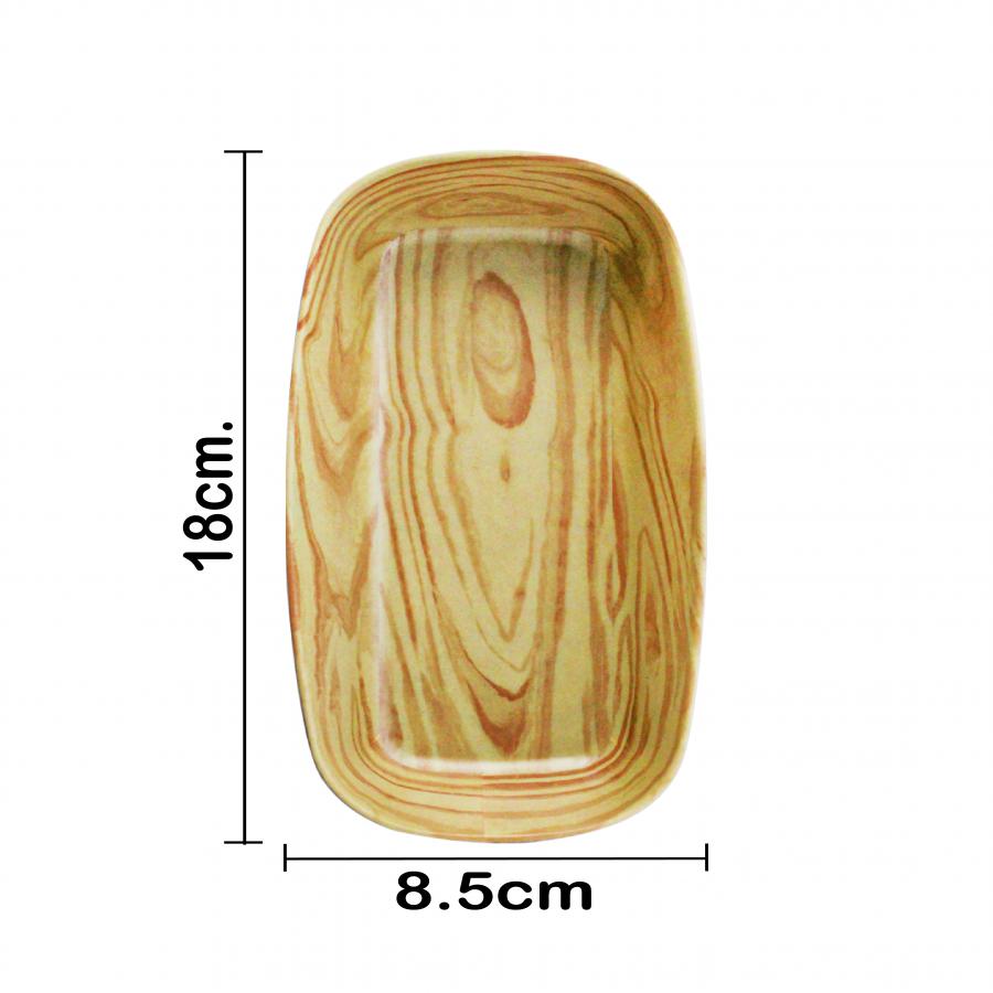 Bowl rectangular de melamina tipo madera de 18×8 cm
