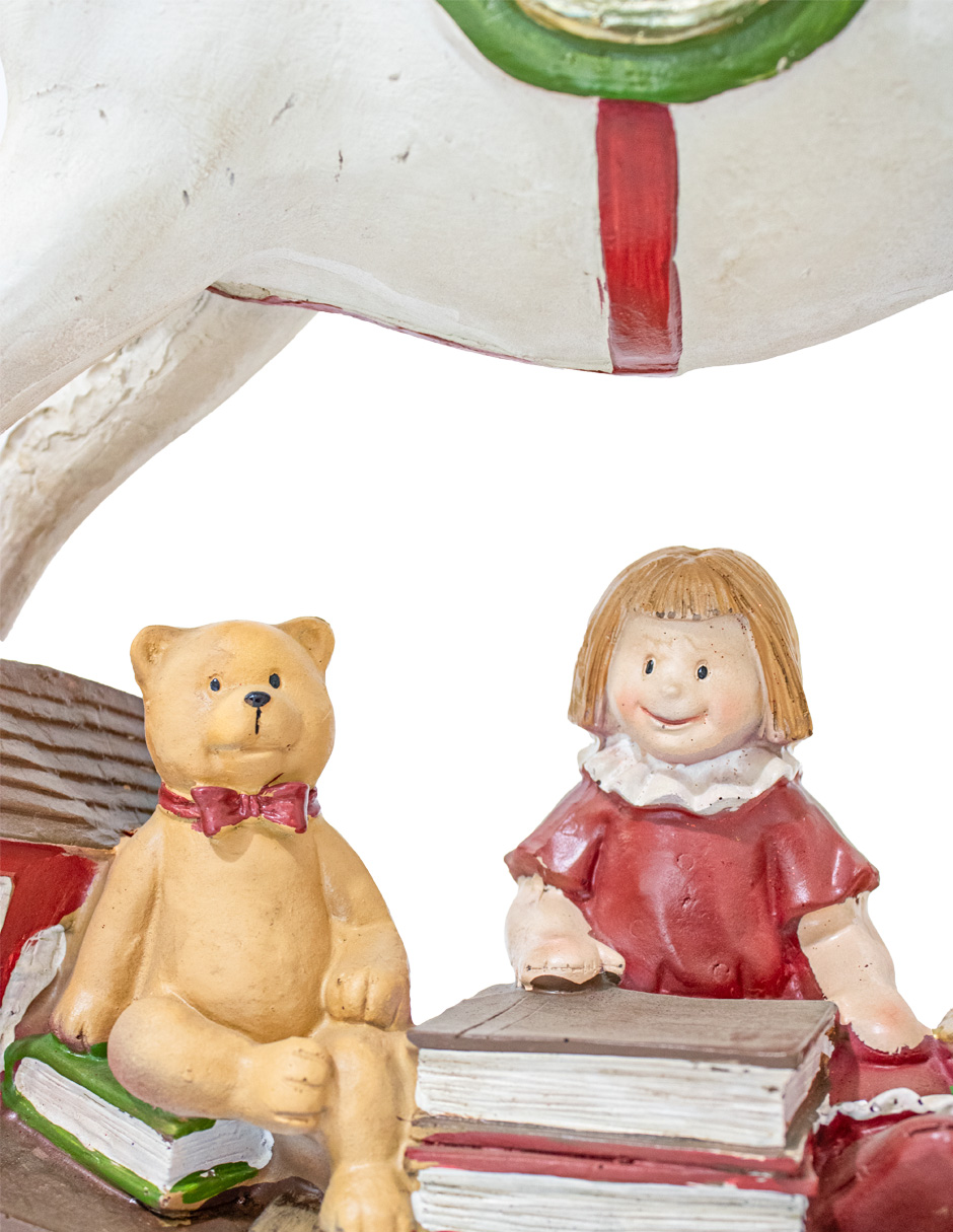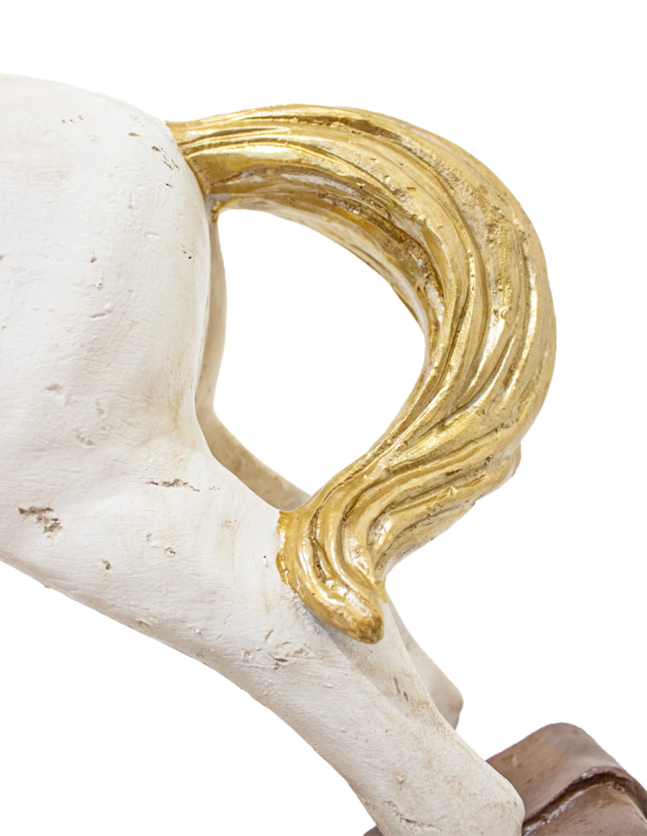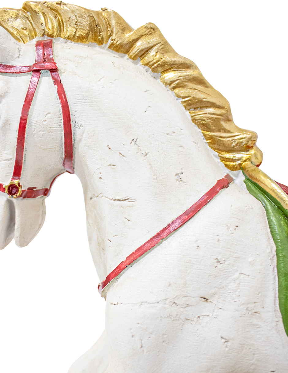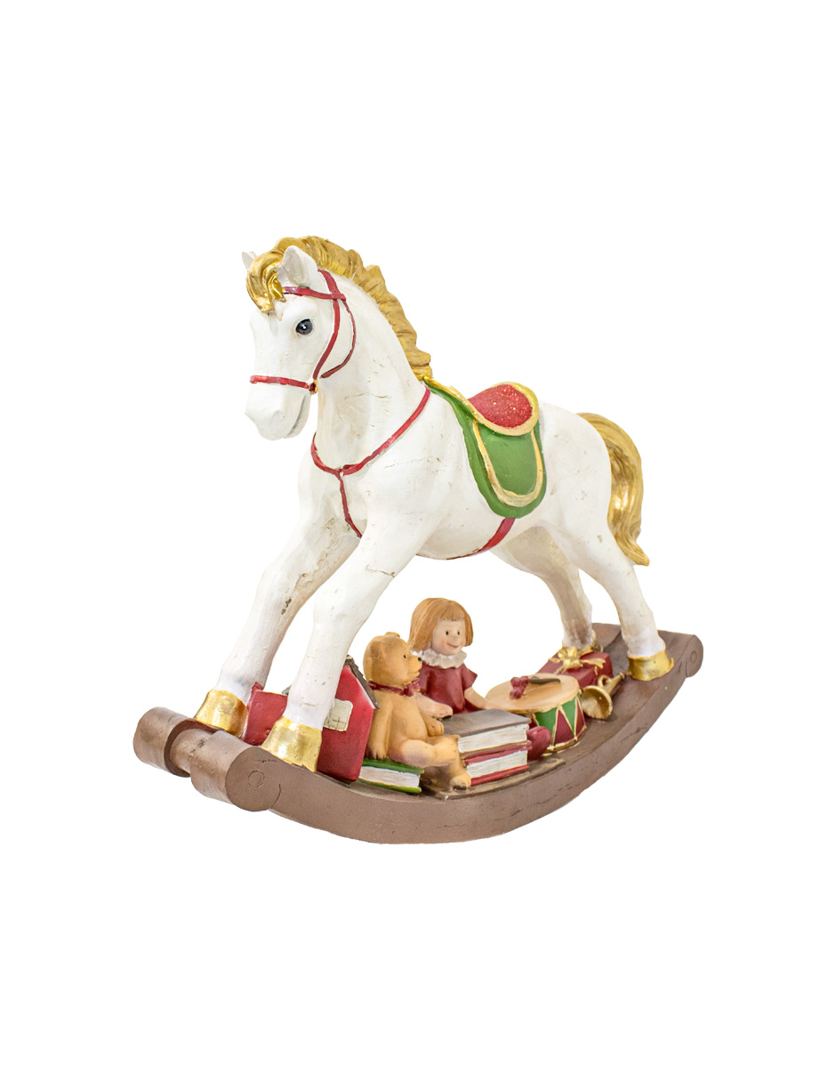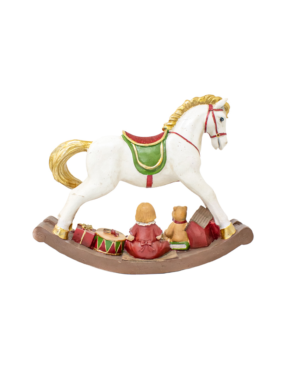 Caballito de poliresina con regalos y base mecedora de 12.8x51x41.2cm