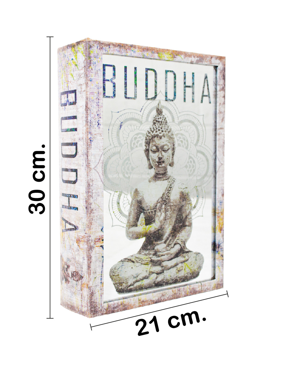 Caja de libro con espejo diseño buda sentado de 30x21x7cm