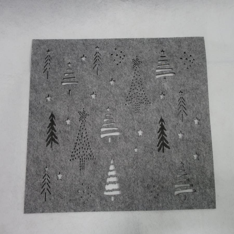 Un moderno camino de mesa de fieltro gris con un diseño de estrellas, con medidas de 40x40x0.3 cm. Ideal para añadir un toque de estilo y sofisticación.
