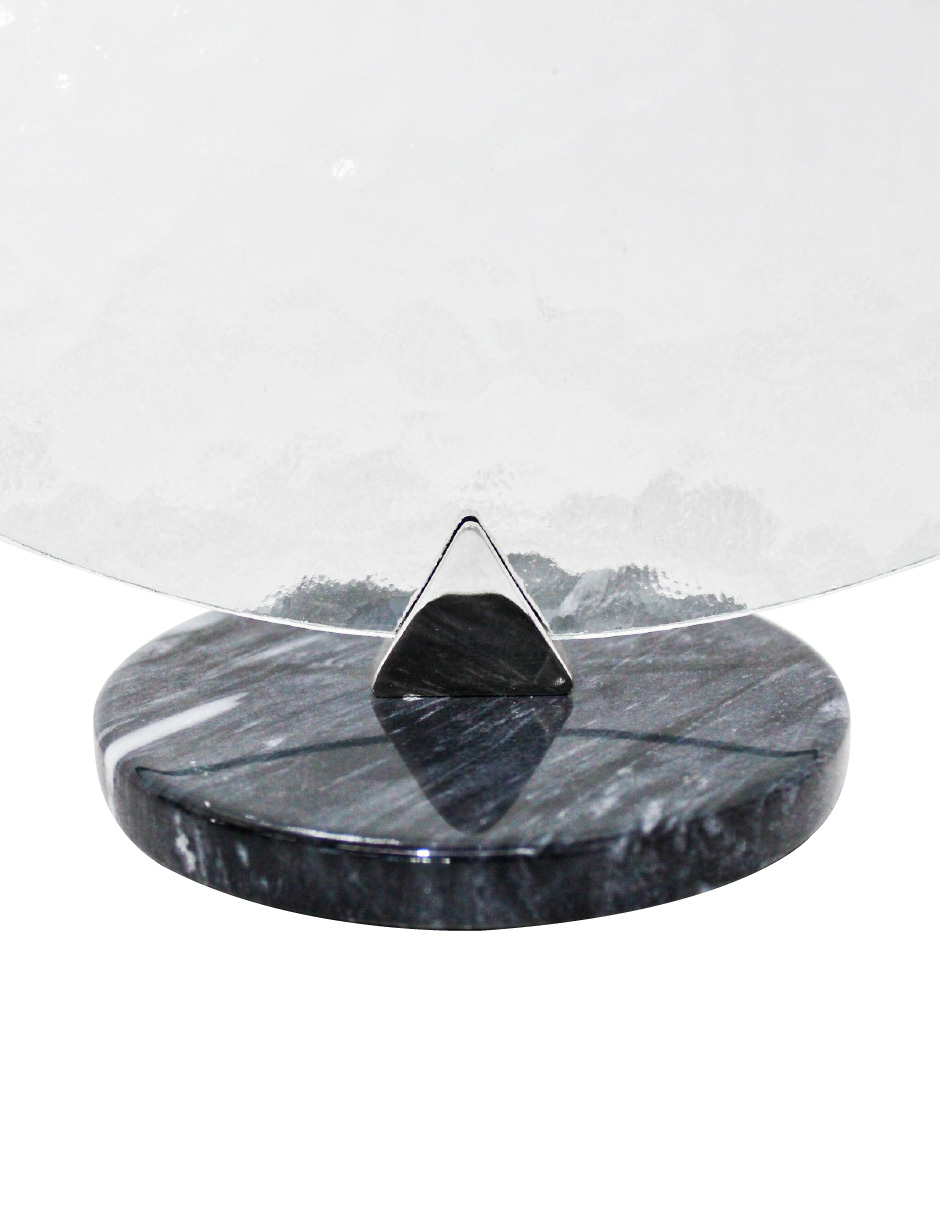 Ilumina tus espacios con un toque de elegancia y sofisticación con este candelabro de metal plateado. Su base de mármol negro te hará sentir la distinción y la calidez. Con medidas de 36.5x12x26 cm, tiene capacidad para 5 velas, ideal para crear un ambiente único en tu mesa de comedor o chimenea.
