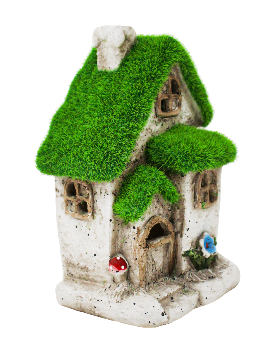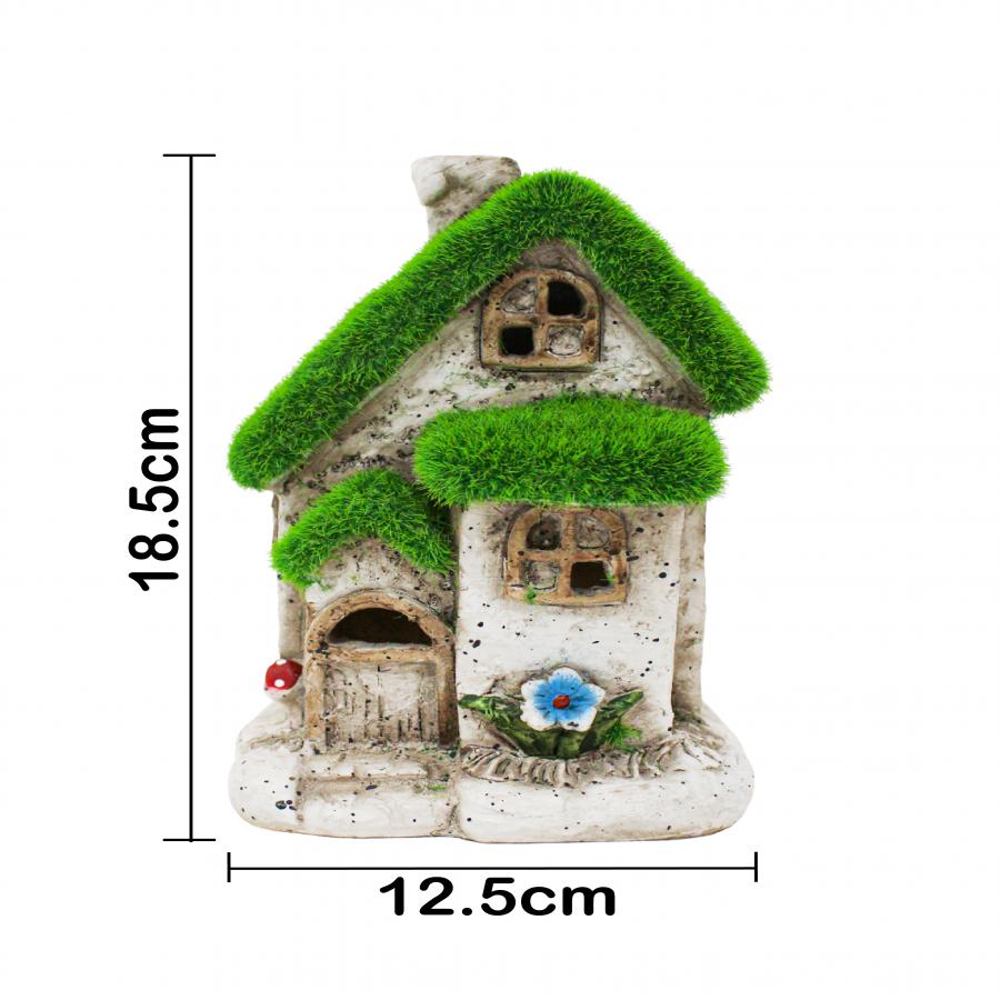 Casa de árbol de poliresina con techo verde de 12.5x11x18.5cm