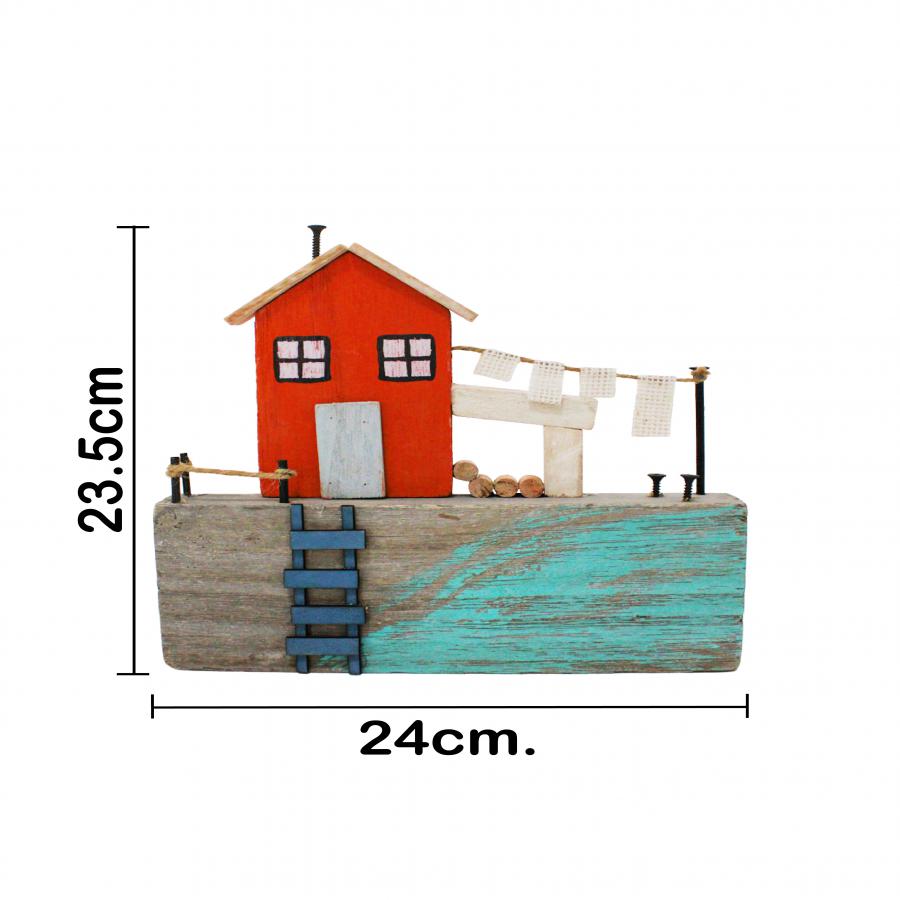 Decoración con un original diseño de casa de playa en color naranja con escaleras. Esta pieza es ideal para quienes buscan una decoración marinera y rústica. Su diseño único evoca una sensación de frescura y tranquilidad, perfecta para crear un ambiente único y lleno de encanto. Material: madera.