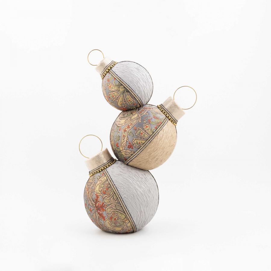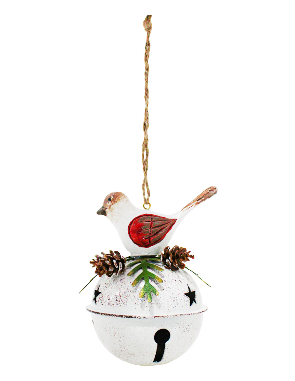 Un lujoso cascabel de metal dorado con cuentas tricolor y pick con piña navideña, con medidas de 6.5×25 cm. Ideal para añadir un toque de brillo y elegancia.