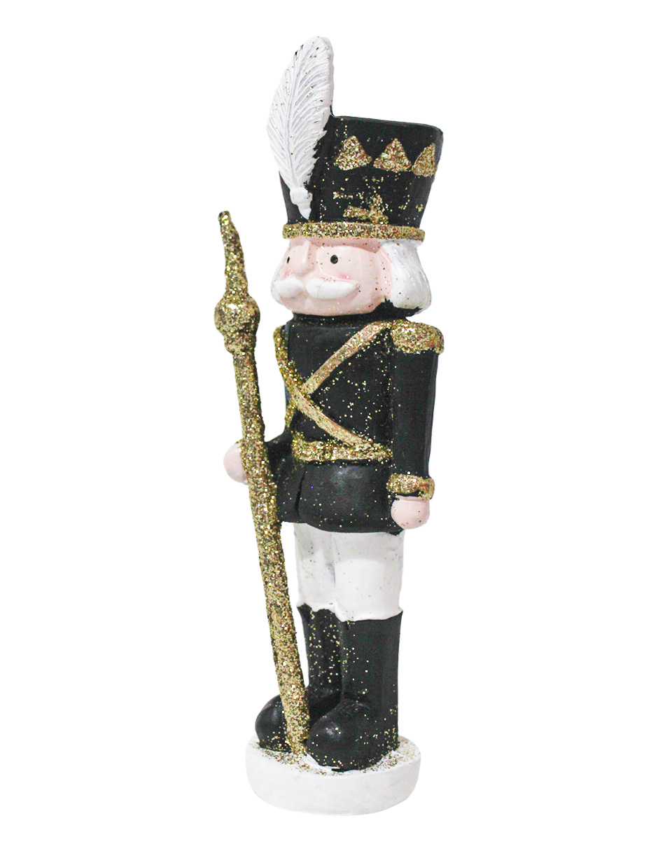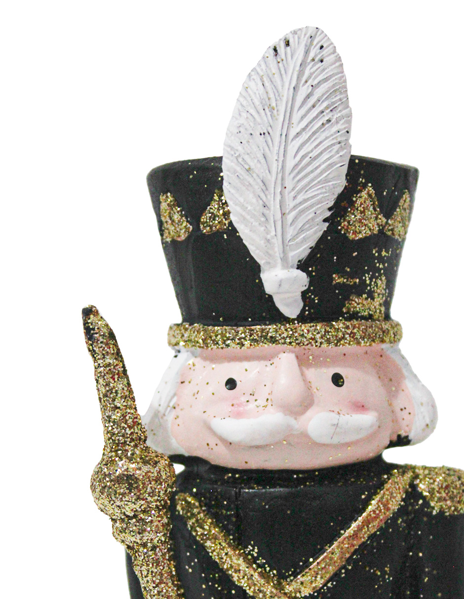 Cascanueces adorable de 6×4.5×17.5cm figura de resina, con su elegante uniforme negro y detalles dorados brillantes, captura la esencia de la Navidad en un colgante. Un detalle delicado y lleno de magia para evocar la alegría de las fiestas en cada mirada.