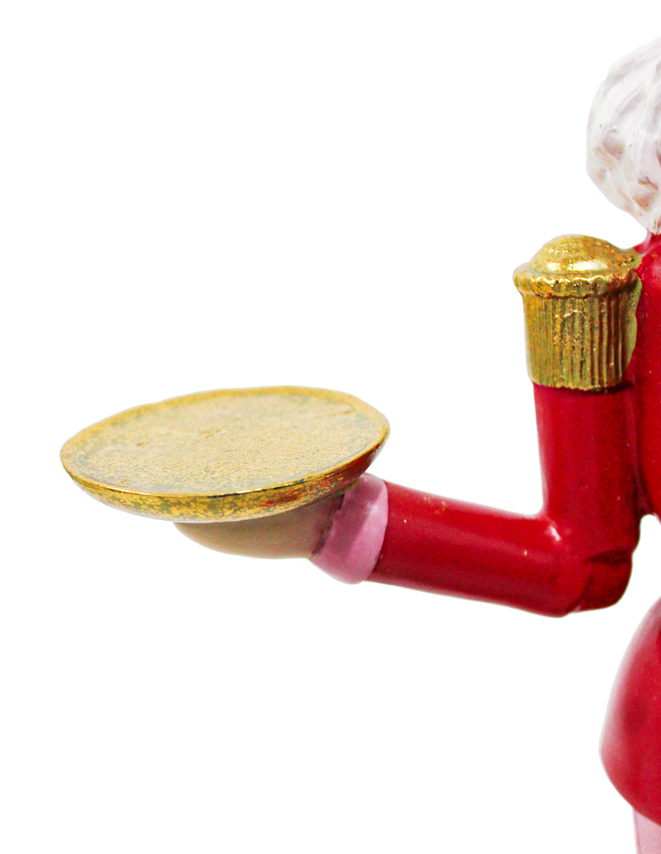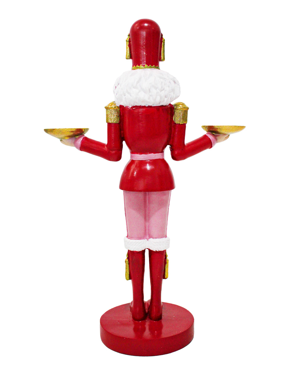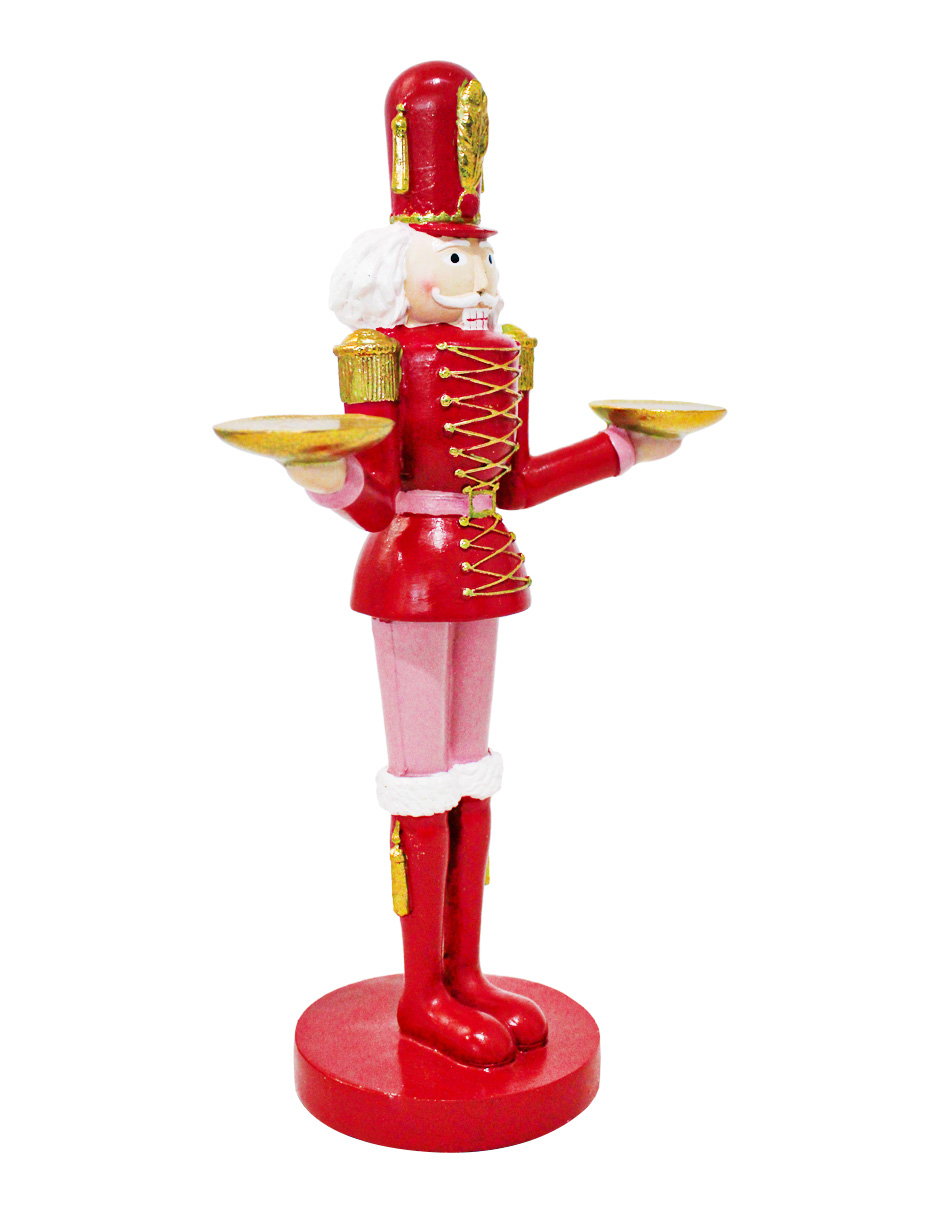 Cascanueces rojo de poliresina con candelabros en las manos de 9.5×20.5x31cm