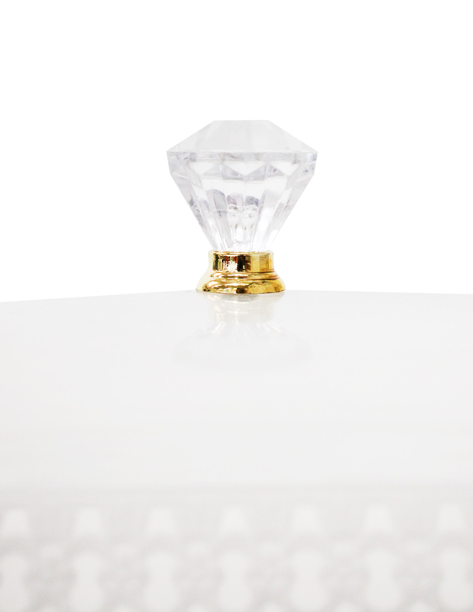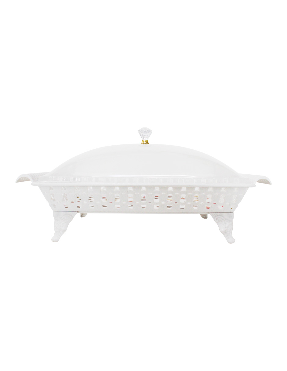 Charola rectangular de plástico con tapa estampado y orilla de encaje