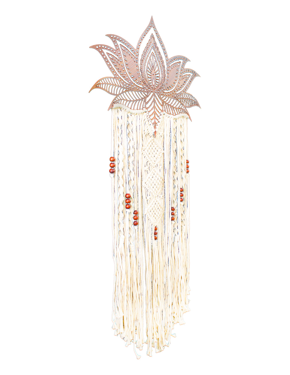 Colgante de macramé con hojas de madera café de 1.5x50x108cm