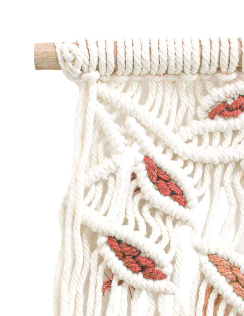 Colgante de macrame diseño hojas ladrillo de 60x34x1cm