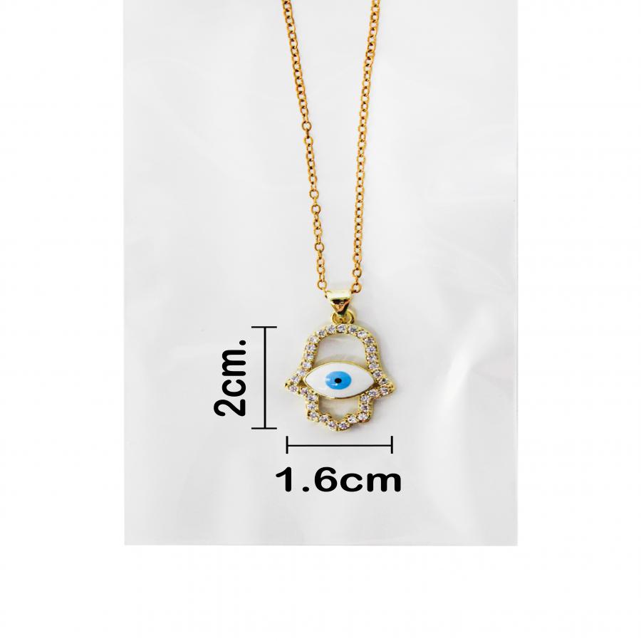 Collar con dije de mano de fatima y ojo turco de 1.7×2.5x50cm