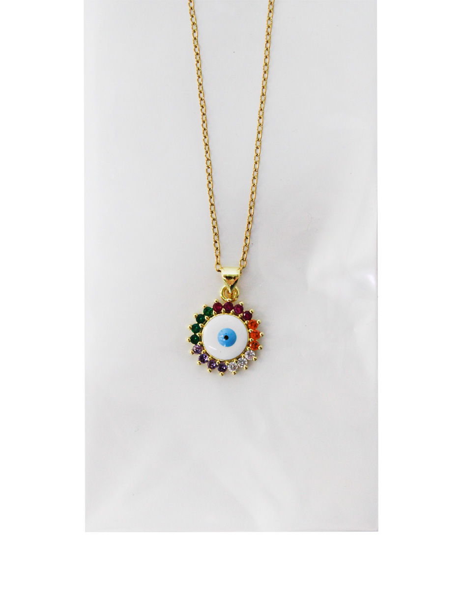 Collar con dije de ojo turco y orilla de pedrería de 1.5×1.5x50cm