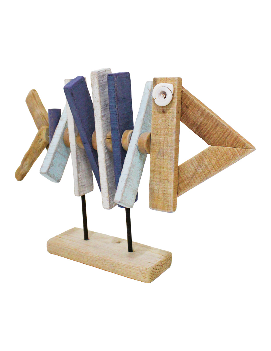 Decoración de pez con la boca calada. Esta pieza es ideal para quienes buscan una decoración marinera y aventurera. Su diseño único evoca una sensación de frescura y tranquilidad, perfecta para crear un ambiente único y lleno de encanto. Material: metal.