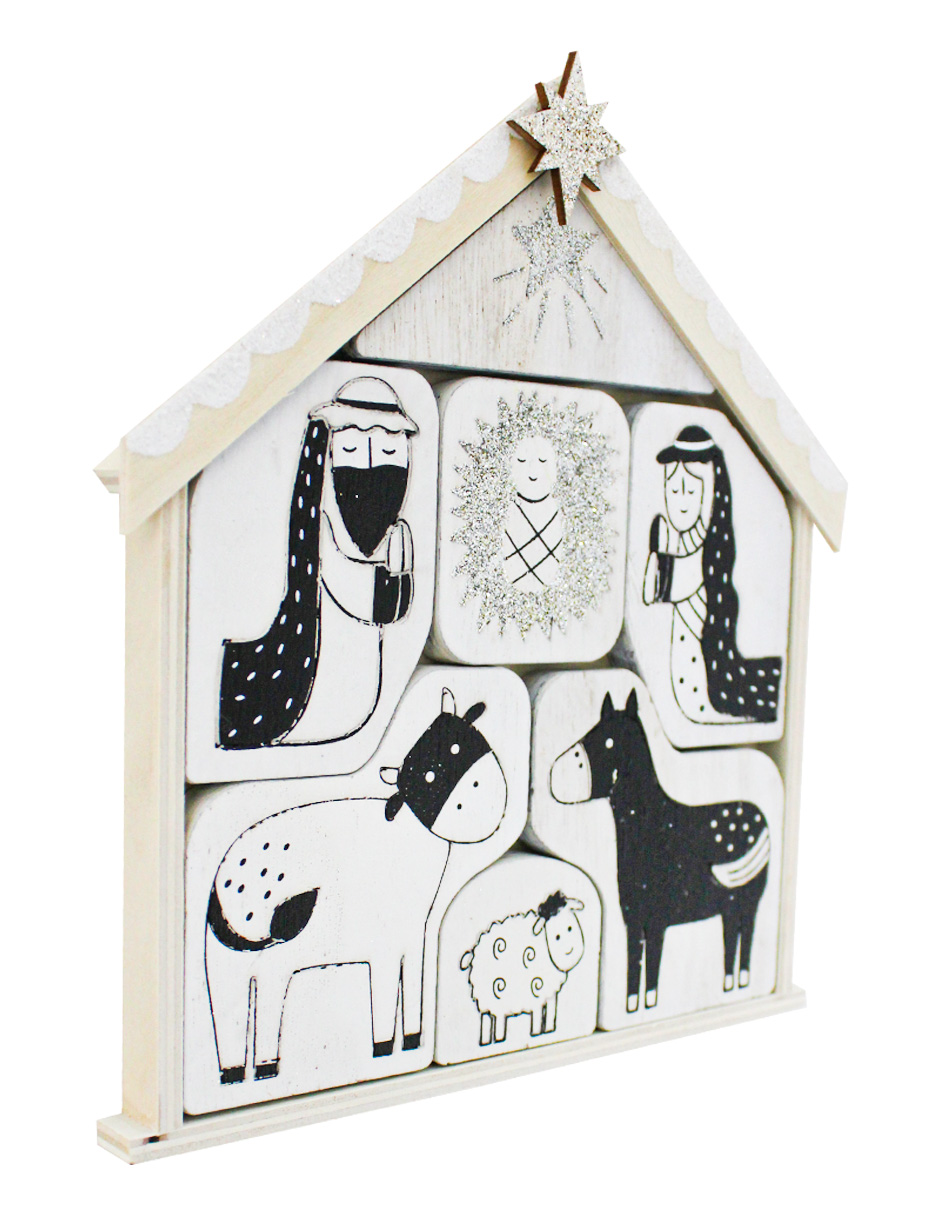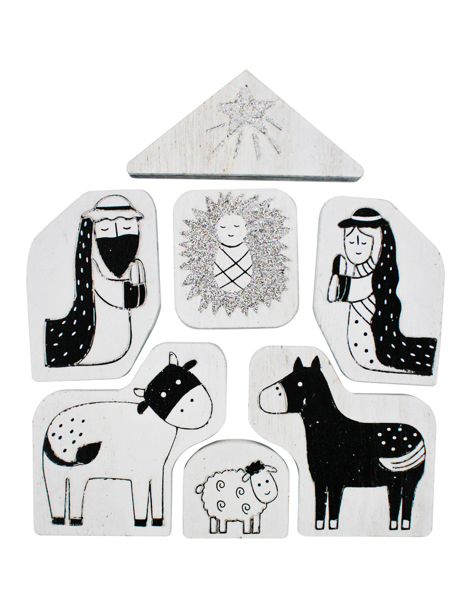 Decoración diseñó pesebres de madera de blanco y negro en caja con 7 piezas19x17x1.5cm