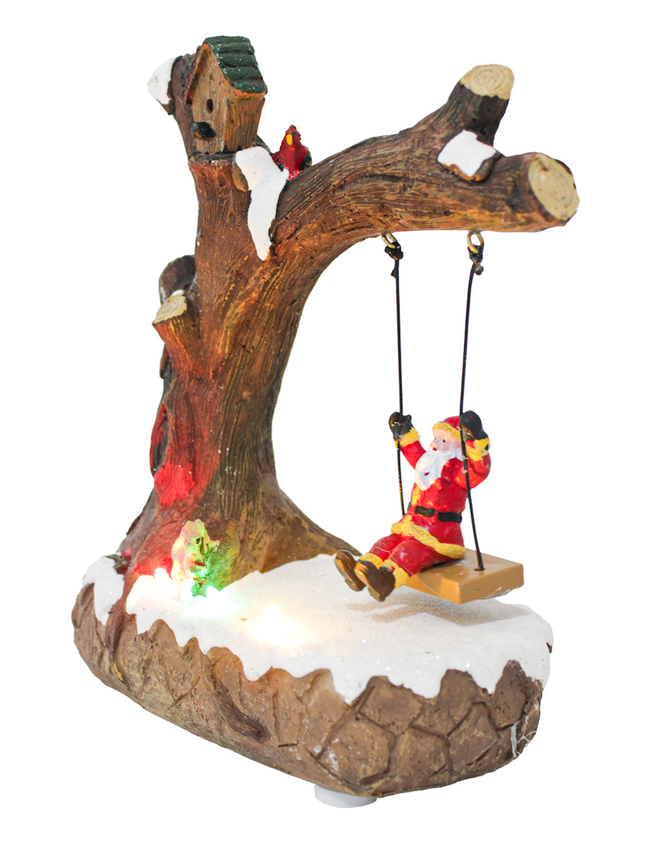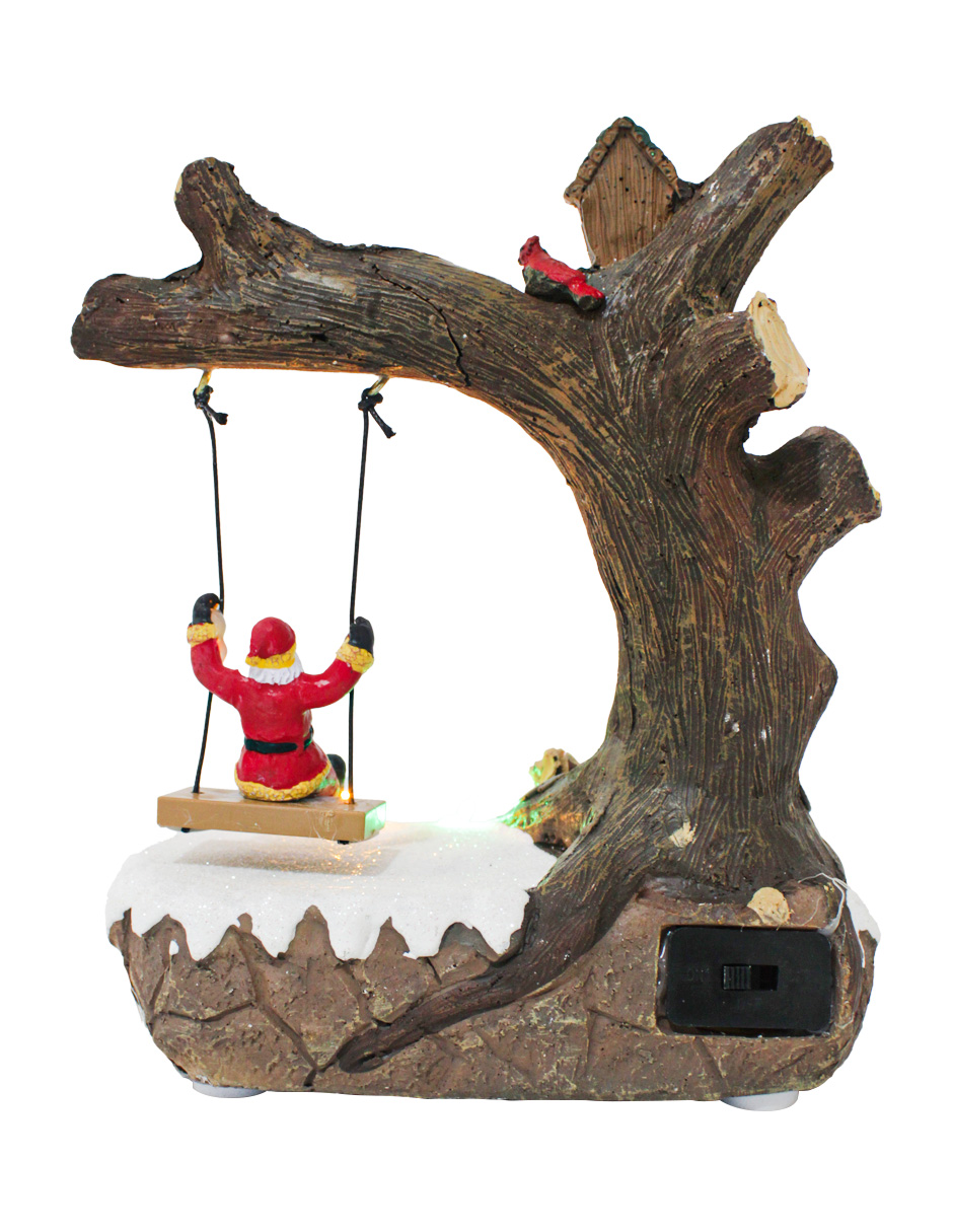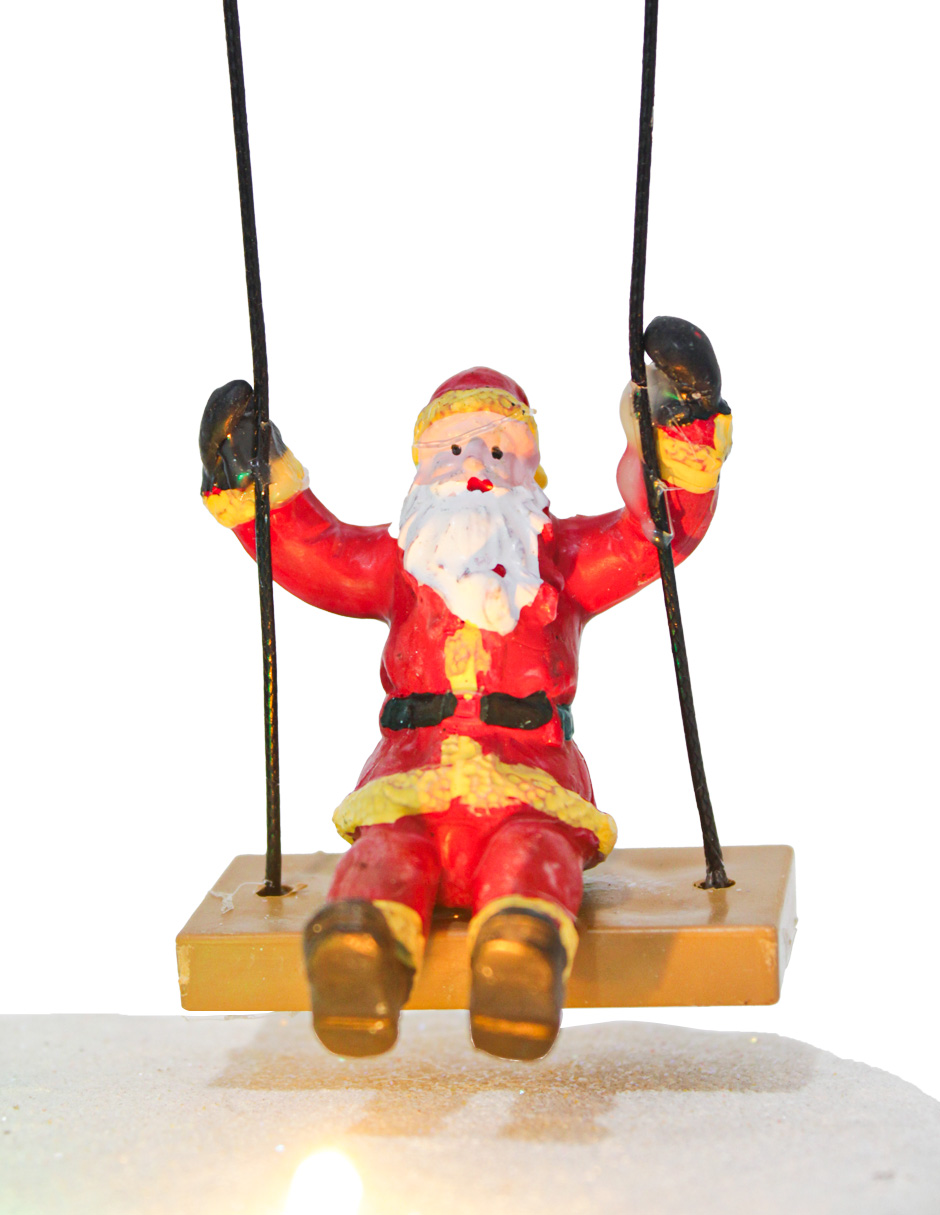 La magia de la Navidad en una pieza. Este Santa en columpio cuenta con luz y sonido para crear una atmósfera festiva y alegre. Con sus medidas de 15x8x18cm y el uso de pilas AA (no incluidas), es ideal para un hogar que busca un toque de magia.