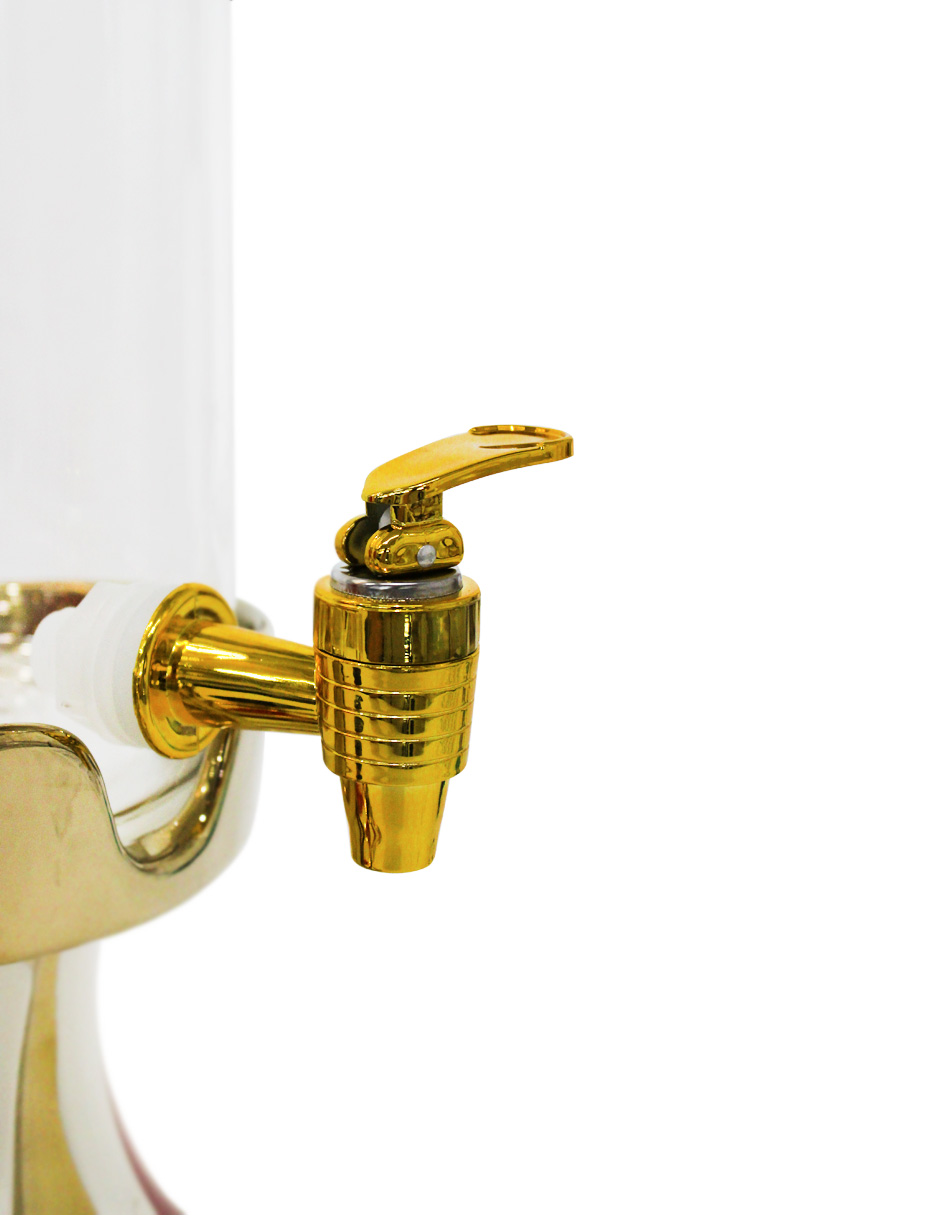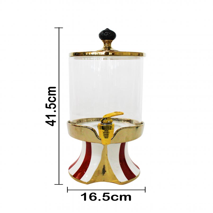 Despachador de porcelana y vidrio rojo con blanco y dorado de 16.5×16.5×39 cm