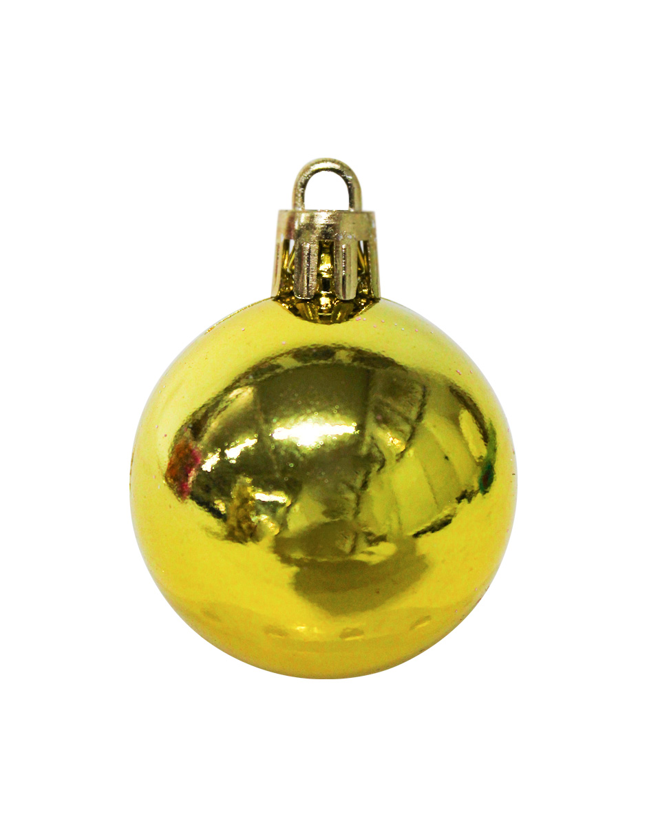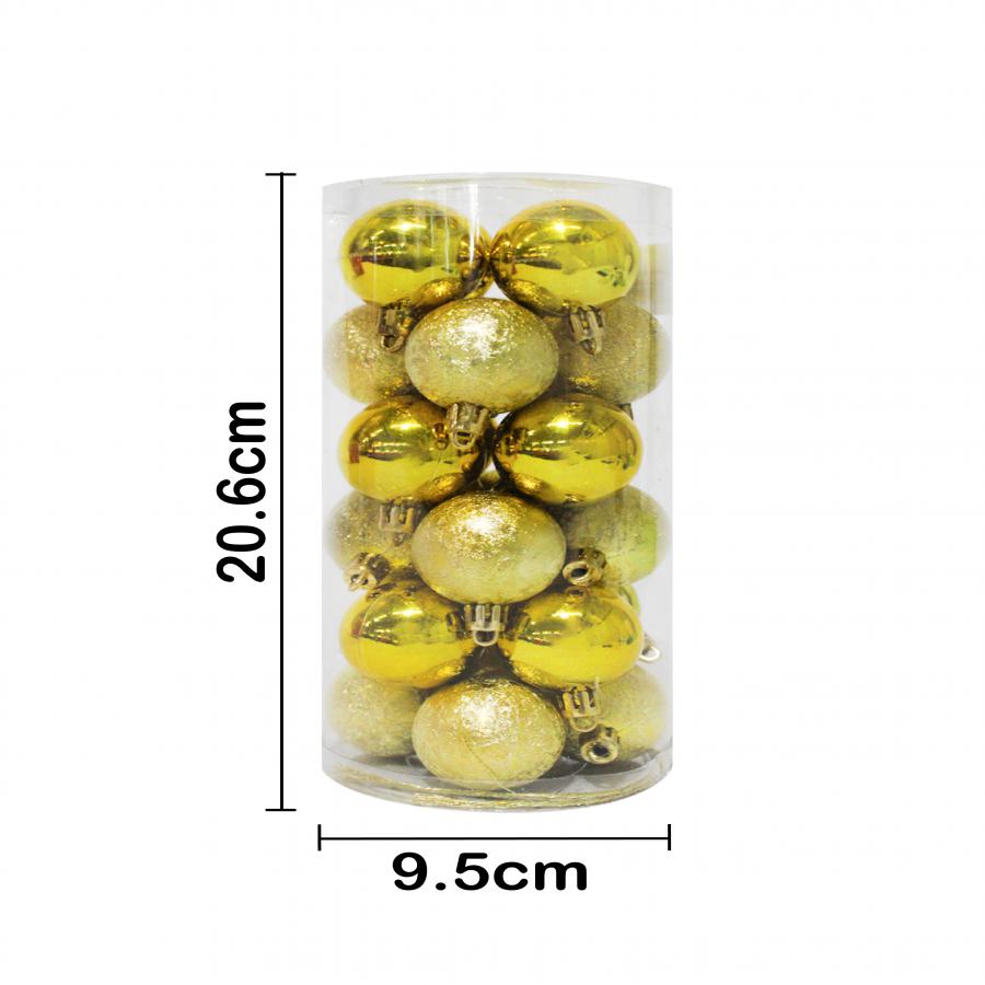 Display de 24 esferas de plástico en color dorado con acabados brillante y mate. Son perfectas para añadir un toque de originalidad y vitalidad a tu árbol. Miden 4cm.