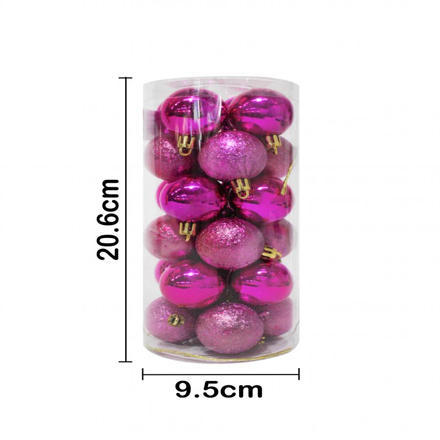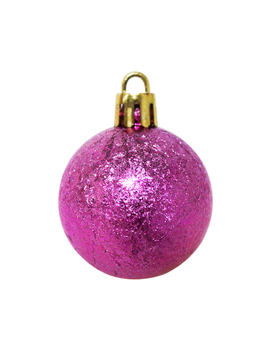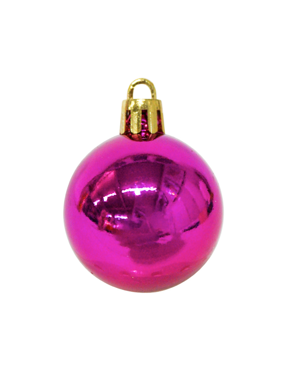 Display de 24 esferas de plástico en color fucsia con acabados brillante y mate. Son perfectas para añadir un toque de originalidad y vitalidad a tu árbol. Miden 4cm.