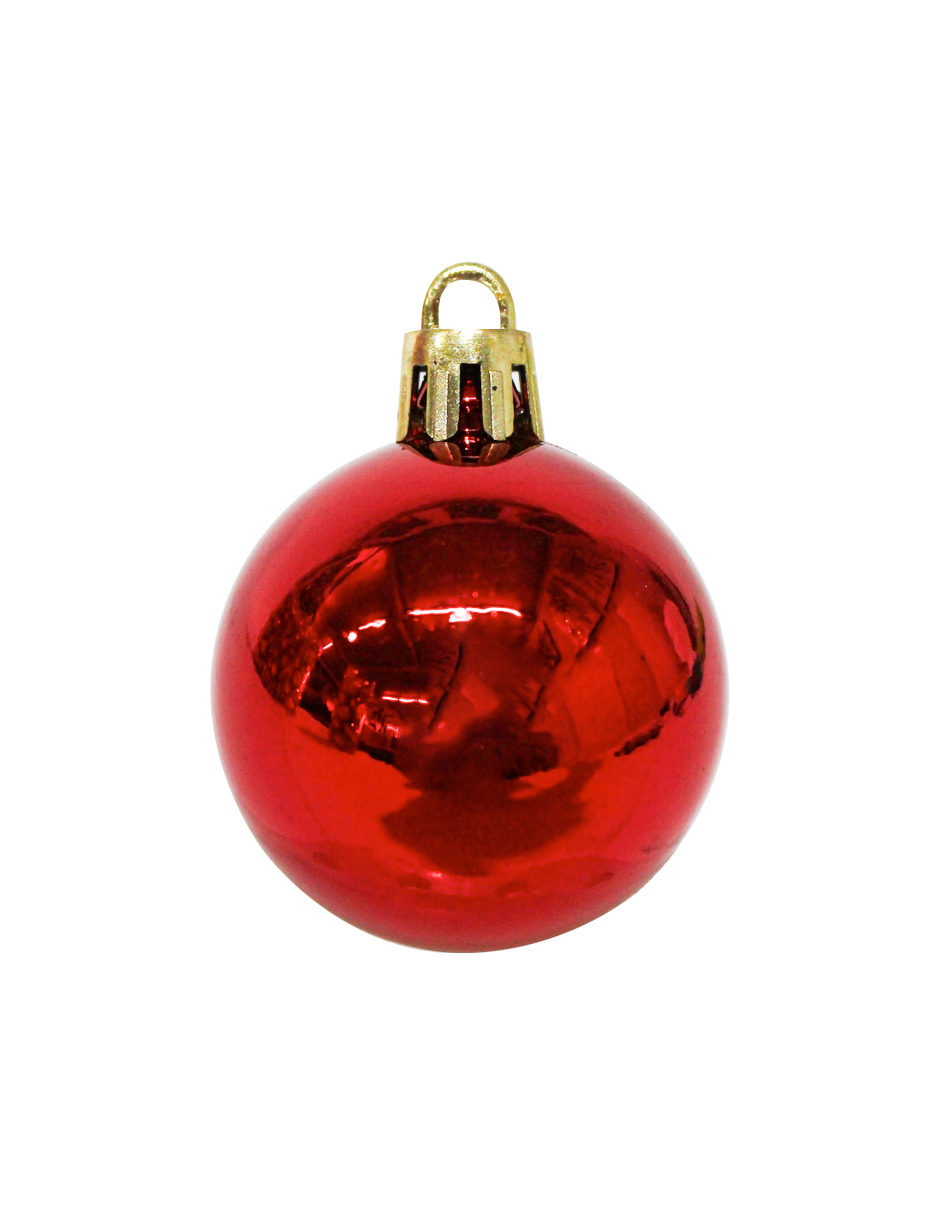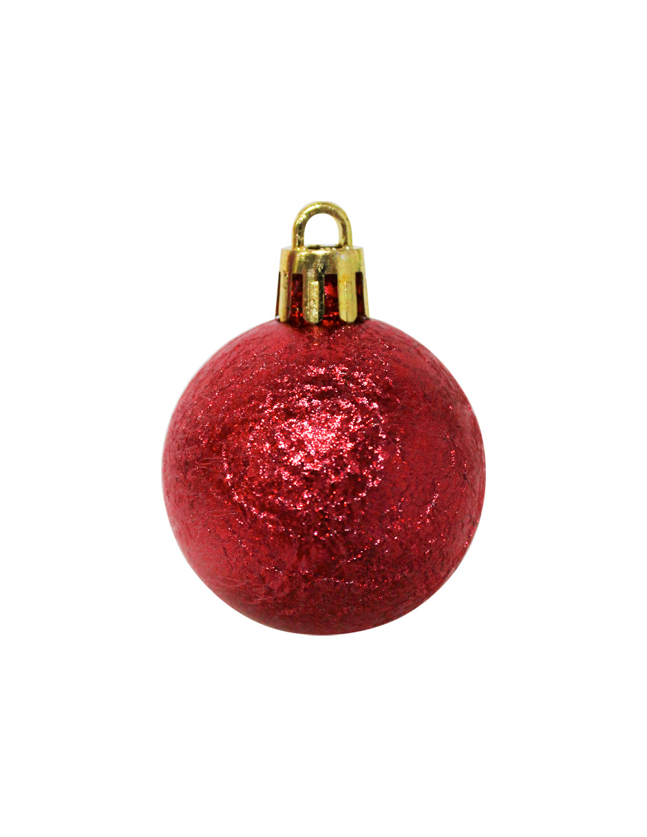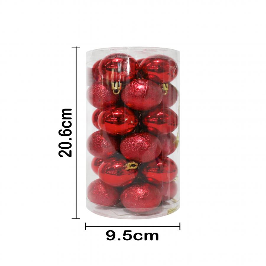 Display de 24 esferas de plástico en color rojo con acabados brillante y mate. Son perfectas para añadir un toque de originalidad y vitalidad a tu árbol. Miden 4cm.