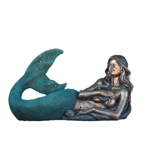 Esta elegante sirena de 60cm se recuesta sobre una piedra, perfecta para decorar cualquier rincón de tu jardín o área de piscina. Su pose relajada invita a la calma y la tranquilidad.