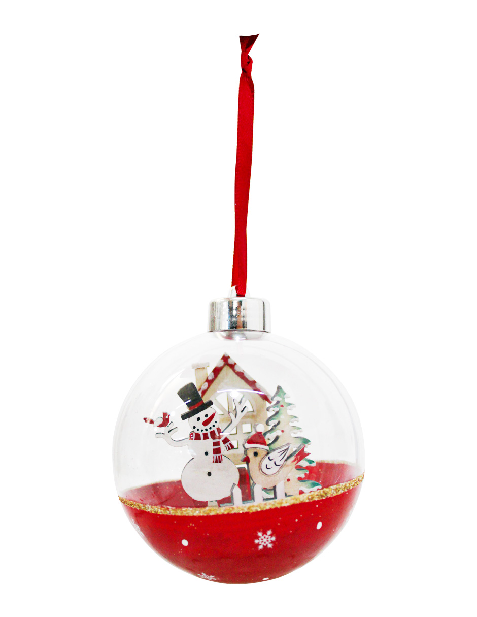 Esfera de decoración en un festivo color rojo con toques en verde y elegantes copos de nieve dorados. Esta pieza es ideal para quienes buscan una decoración clásica y atemporal. Su diseño evoca una sensación de tradición y sofisticación, perfecta para crear un ambiente elegante y festivo que llenará tu hogar de un encanto inolvidable. Material: metal. Medidas: 35x35x38cm.