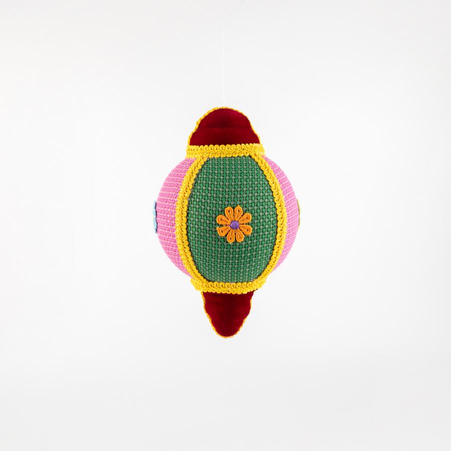 Esfera de decoración en un delicado color rosa, adornada con patrones en amarillo y aqua. Esta pieza es perfecta para quienes buscan una decoración moderna y original que se aleje de lo tradicional. Su vibrante combinación de colores evoca una sensación de alegría y frescura, ideal para crear un ambiente lúdico y festivo. Material: metal. Medidas: 45x45x49cm.