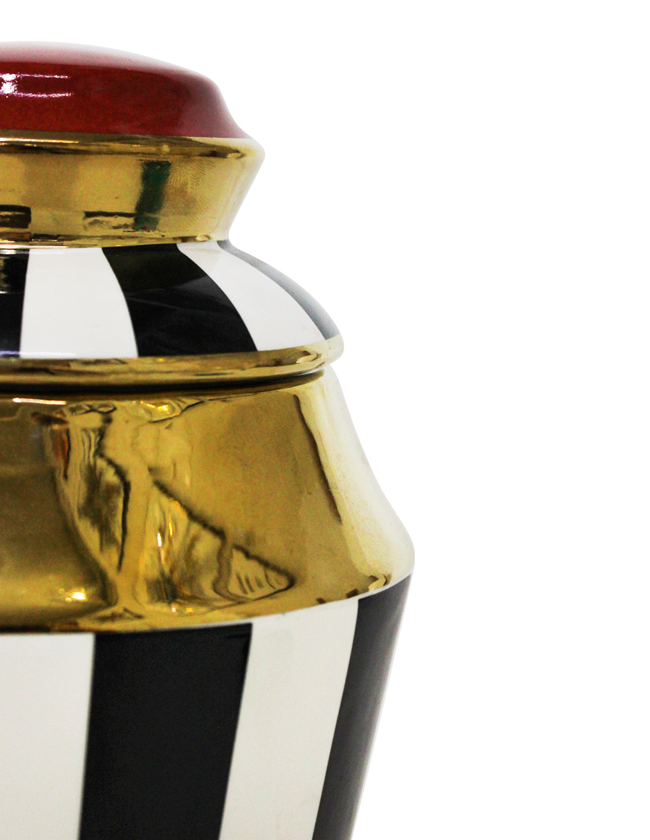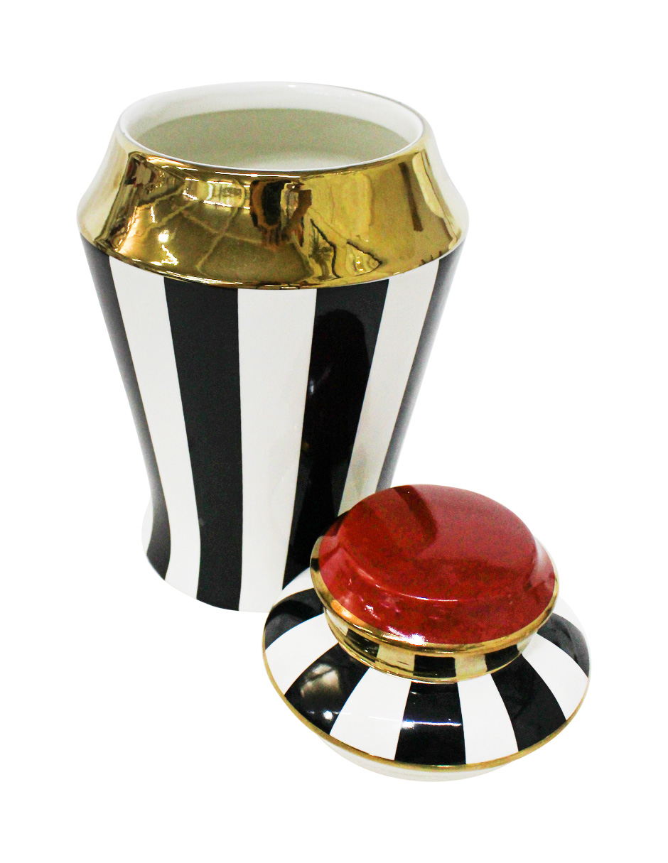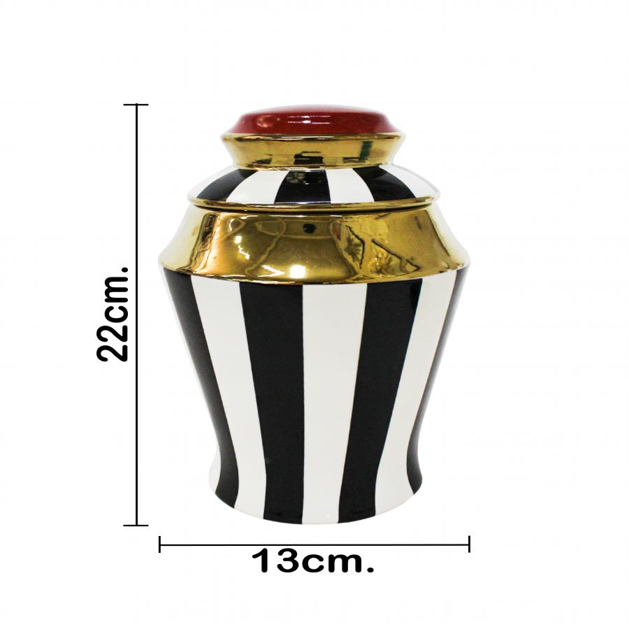 Especiero de porcelana negro con blanco y dorado de 14x14x23 cm