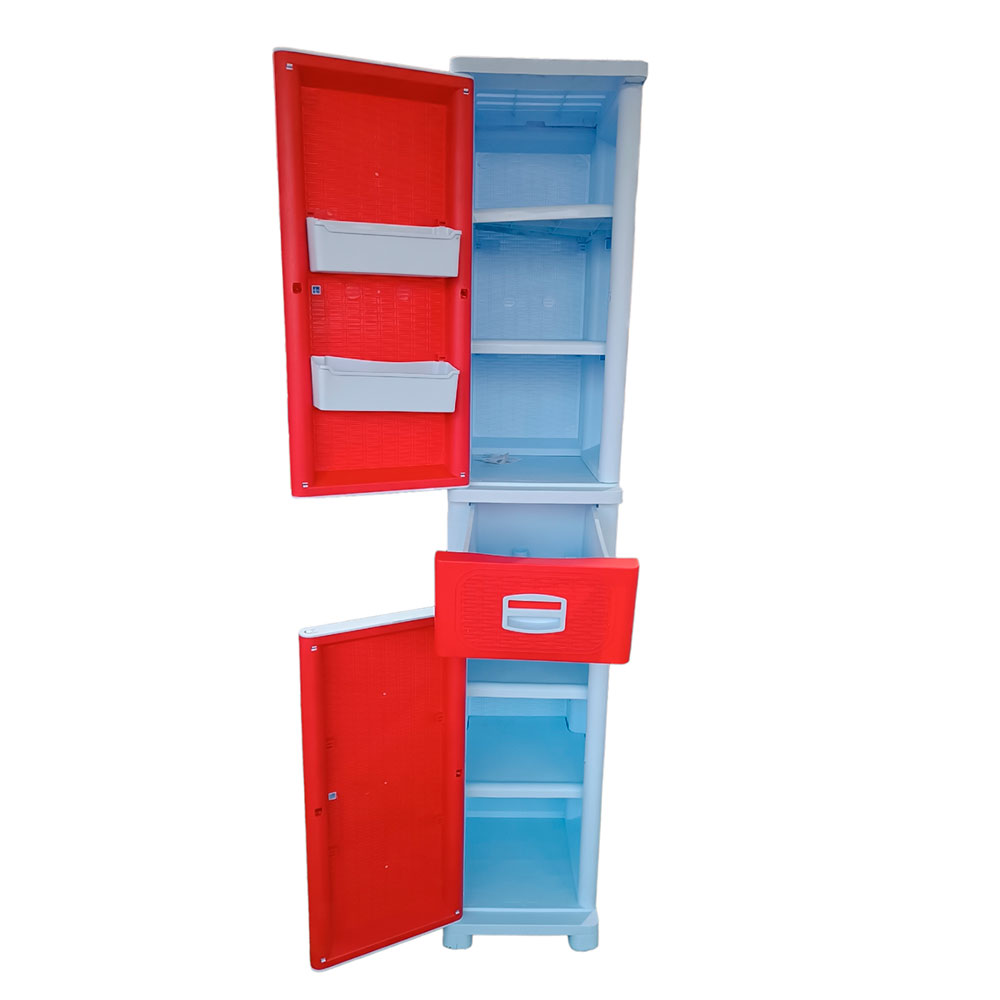 Estante de plástico con cajón rojo con blanco de 35x44x198cm