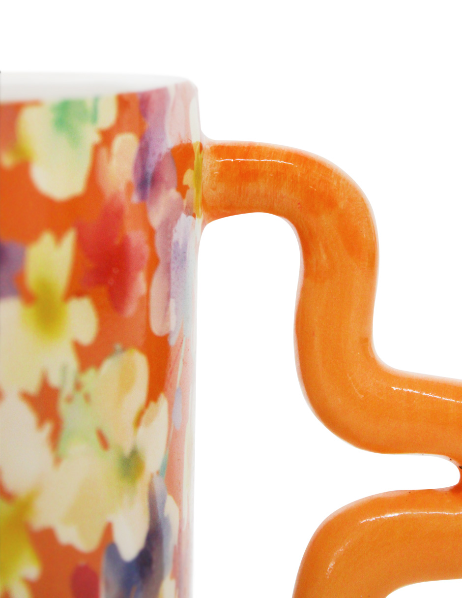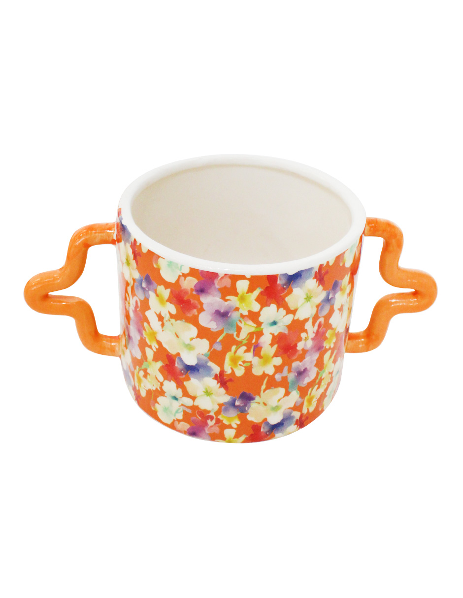 Florero de ceramica estampado flores con agarraderas naranja de 23×12.8×11.1cm