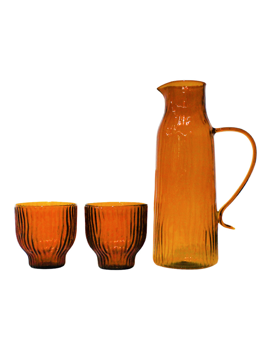 Jarra de vidrio ámbar con vasos de 240 ml de 8.5x13x23.5 cm