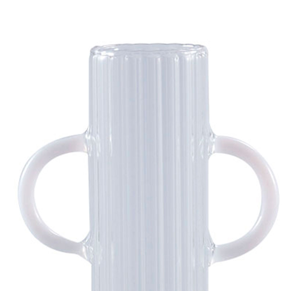 Jarron de cristal con agarraderas blancas de 19x19x33cm