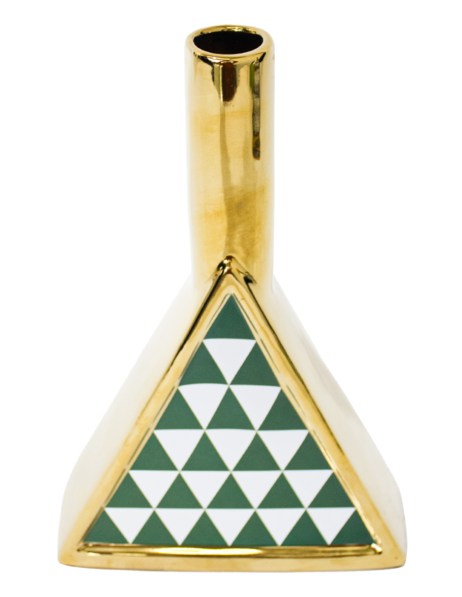 Jarrón Triangular Dorado con Verde