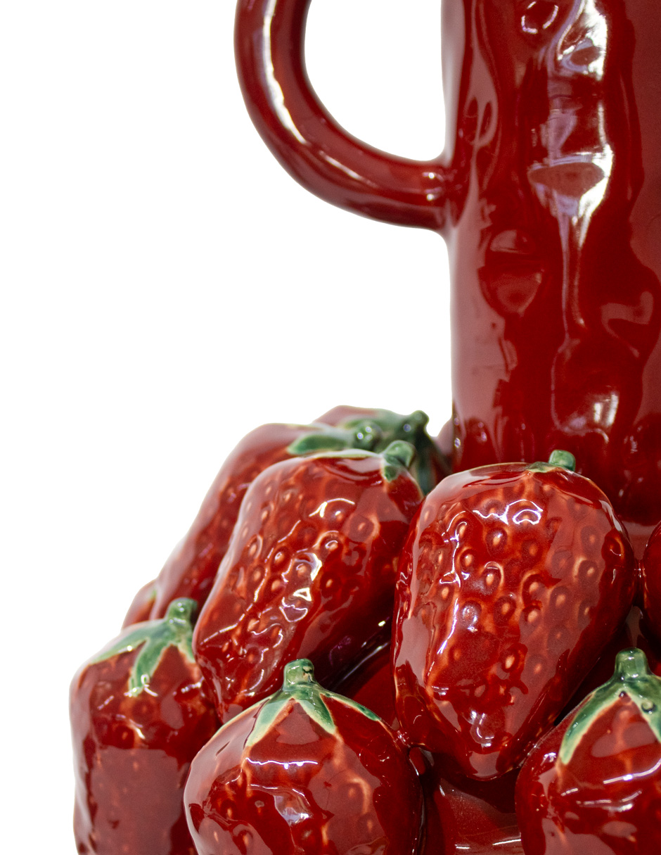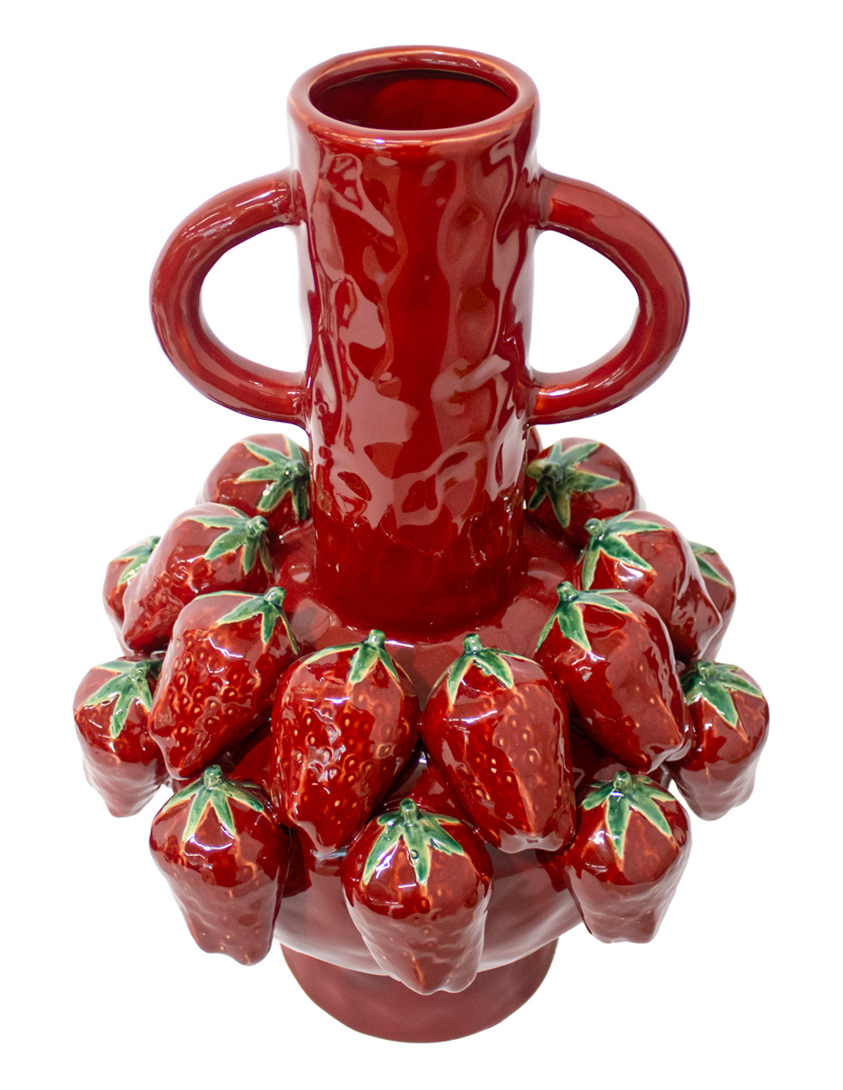 Dale un hogar a tus flores con un toque de originalidad. Este jarrón de porcelana rojo con fresas es perfecto para embellecer tu espacio, añadiendo un acento único y divertido. Su diseño te hará sentir la creatividad y la alegría. Mide 28.5×28.5x42cm.