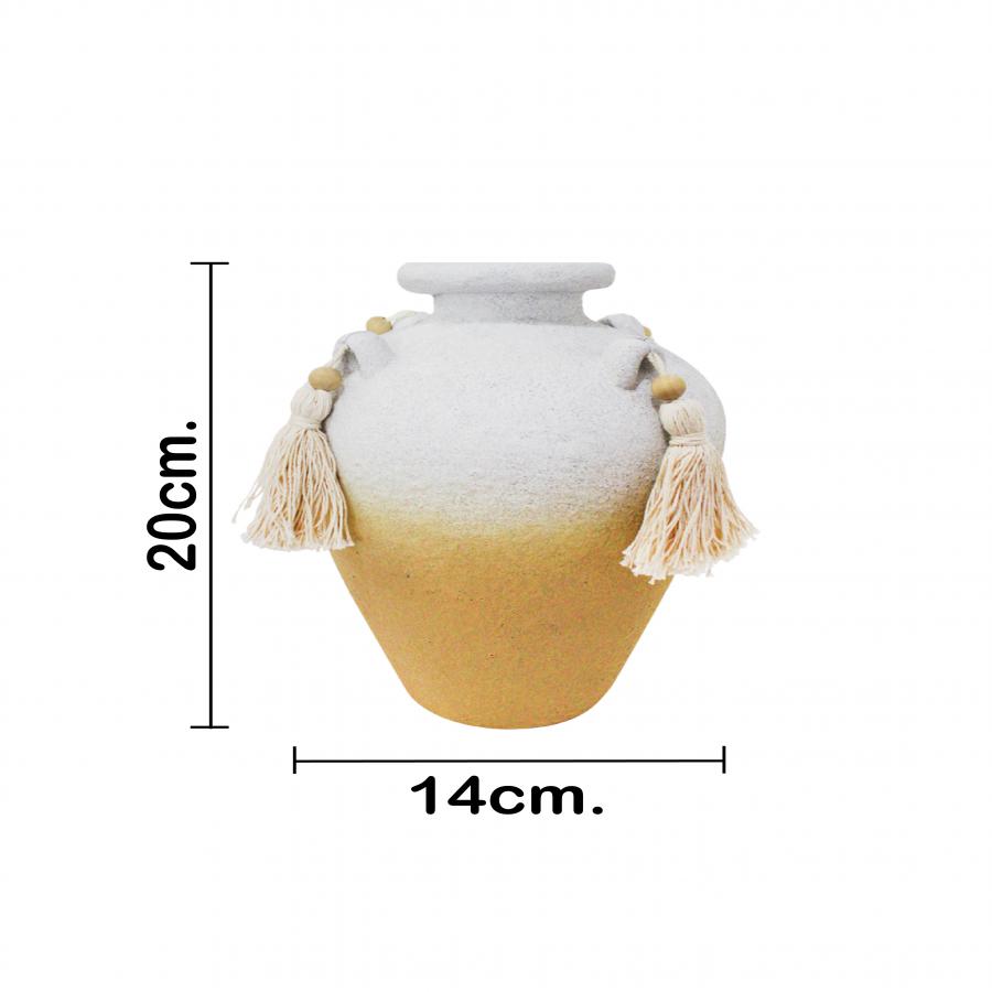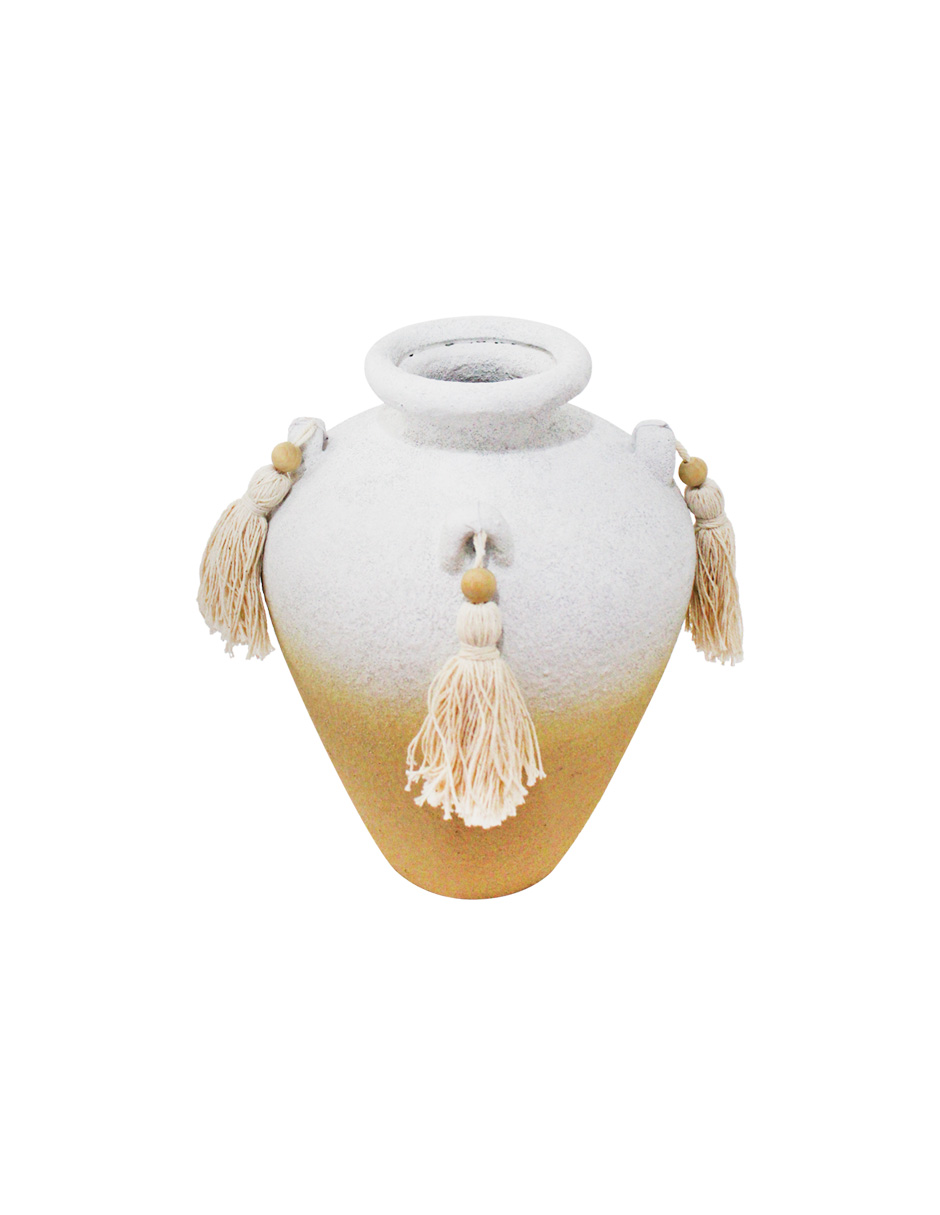 Jarrón de terracota blanco con borlas de 14.5×14.5x20cm