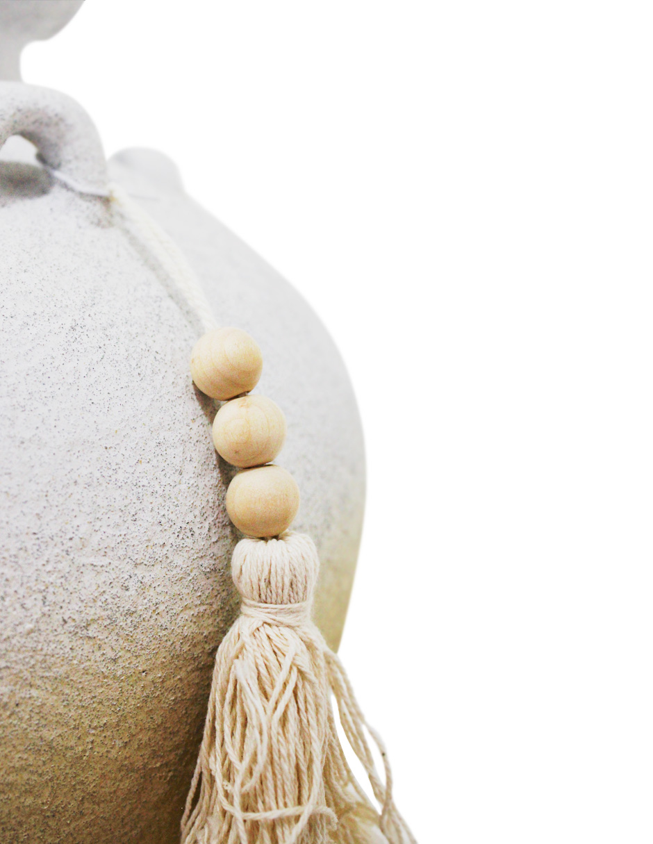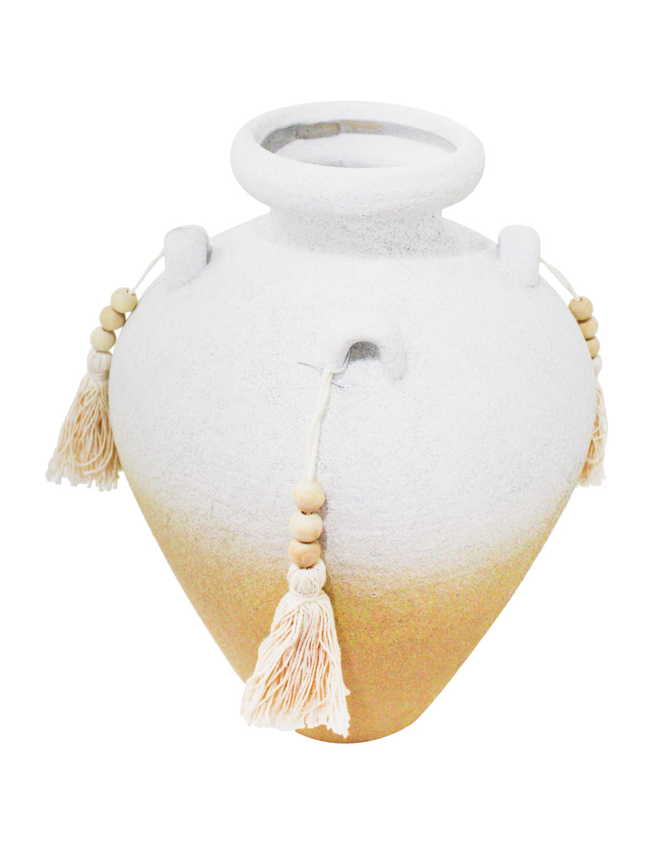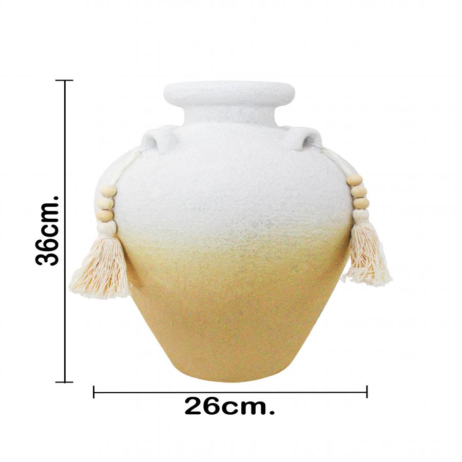 Jarrón de terracota blanco con borlas de 25.5×25.5×35.5cm