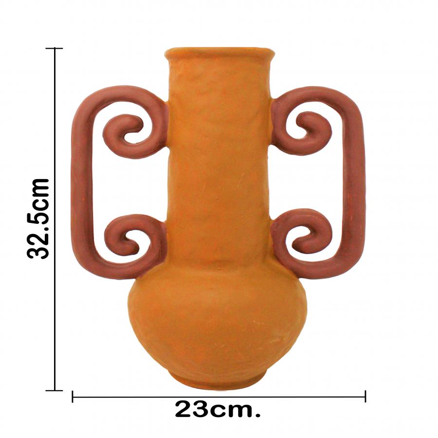 Jarrón de terracota con agarraderas marrón de 22.5x14x33cm