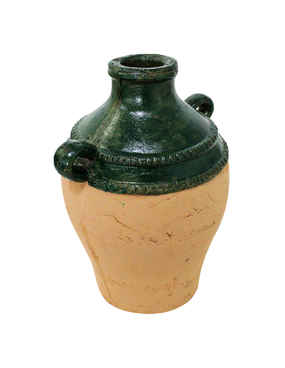 Jarrón de terracota con agarraderas verde de 21.5×17.5×26.5cm