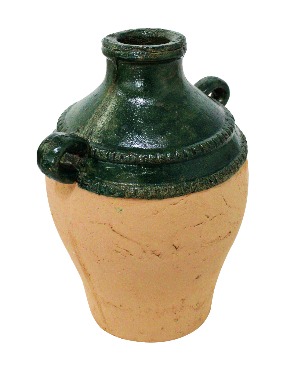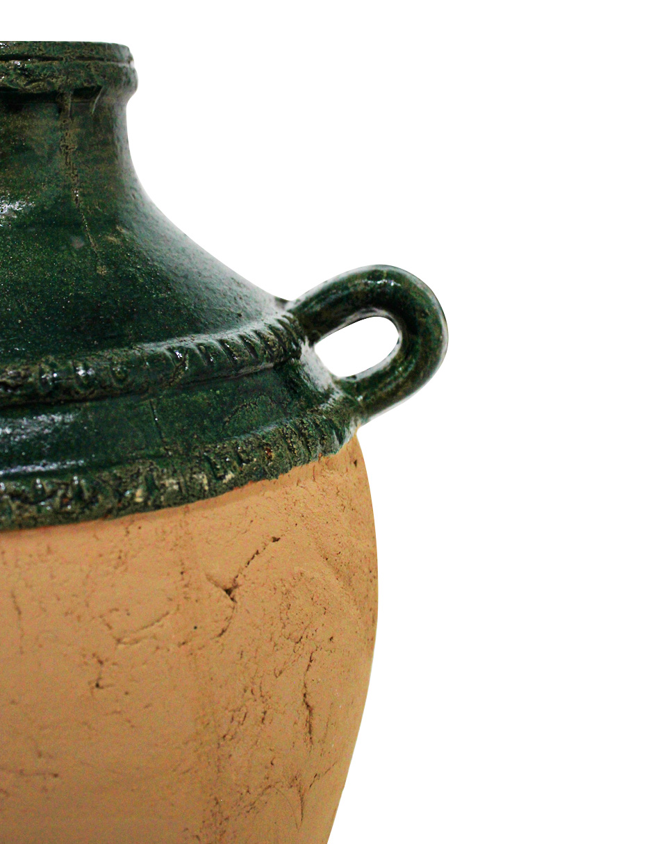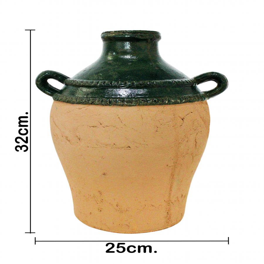 Jarrón de terracota con agarraderas verde de 26x22x32.5cm