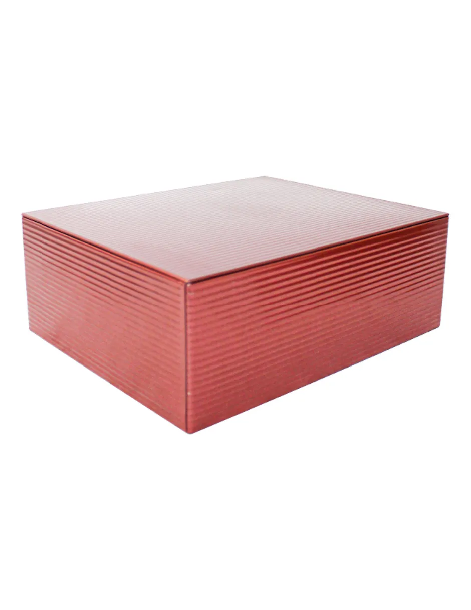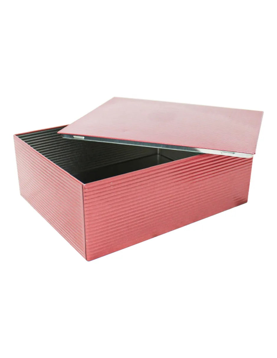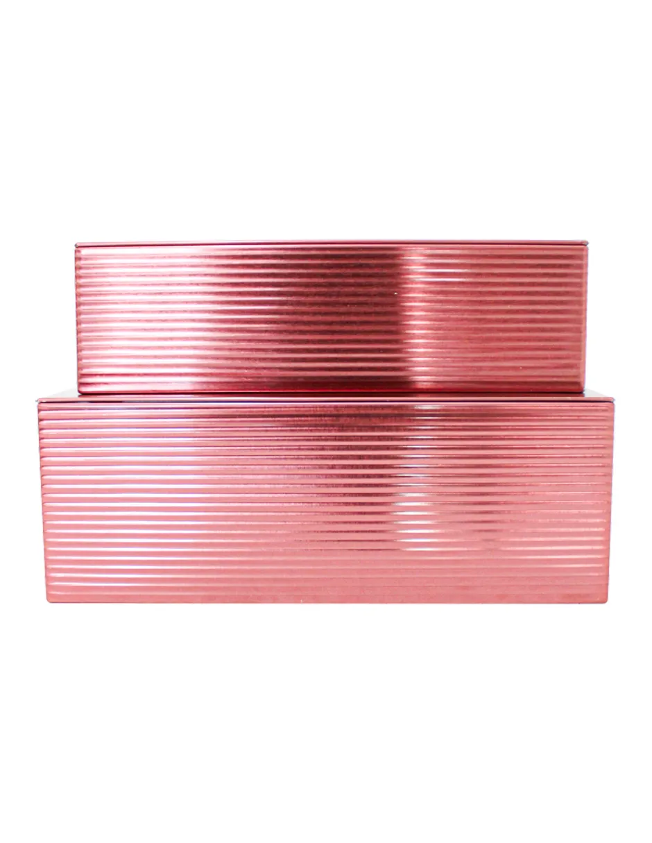 Dale un toque de elegancia a tu hogar. Este juego de 2 cajas rectangulares de lámina a rayas color vino es perfecto para guardar tus objetos. Su diseño te hará sentir la organización y la distinción. Mide 17/6.4×24/22×8.8×6.4cm.
