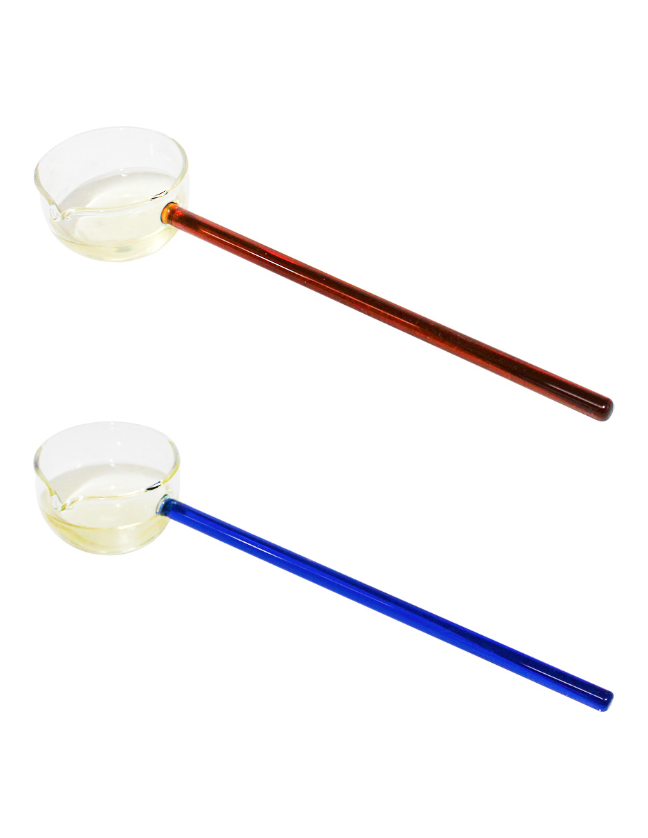 Set de 2 cucharas de vidrio con mango de color ámbar y azul de 60ml