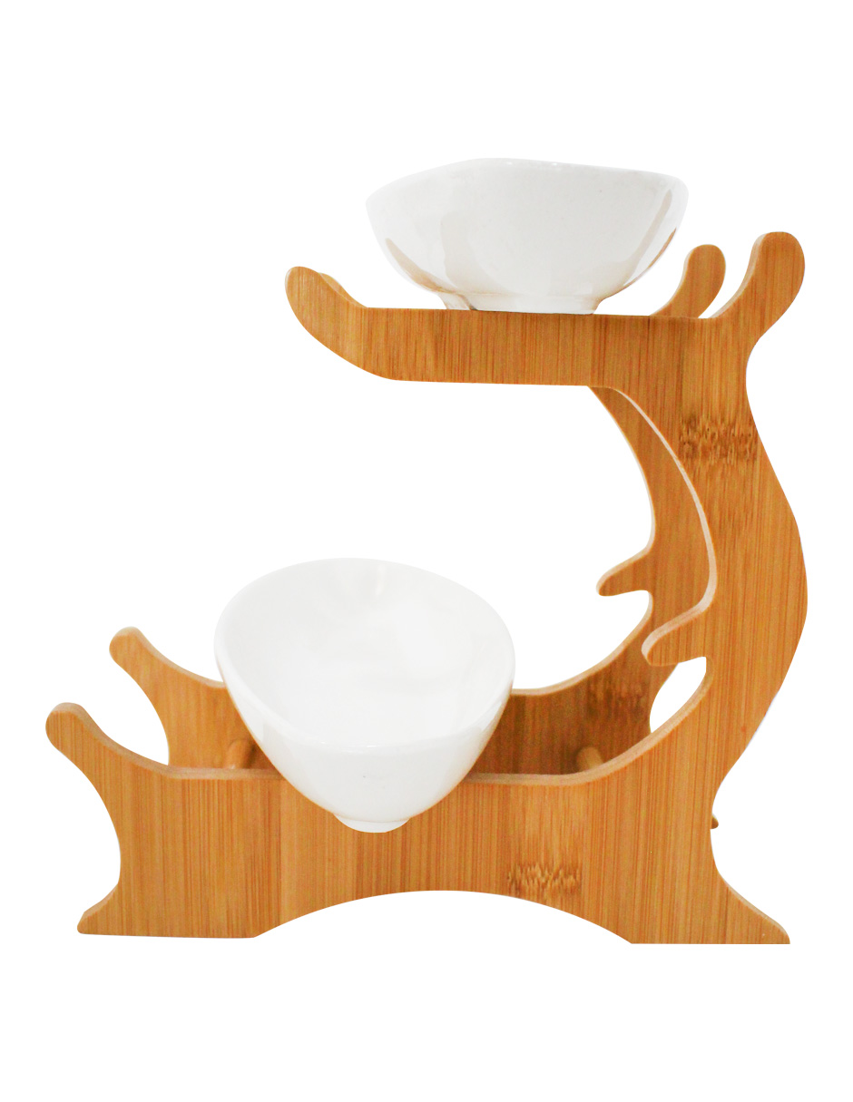 Juego de 2 platones oval de porcelana con base de madera de 26x10x19.5cm