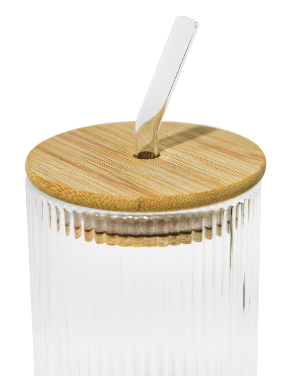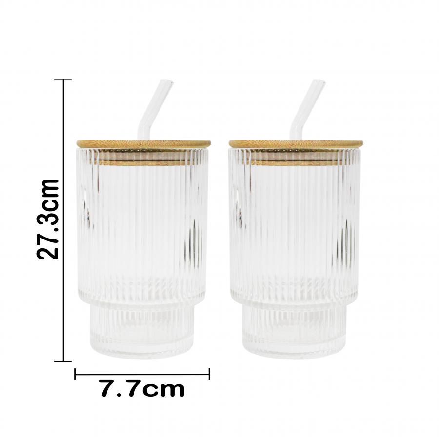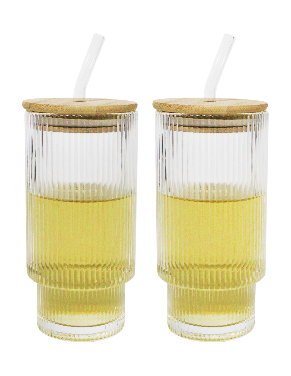 Juego de 2 vasos de vidrio con tapa de bambú de 450 ml de 7.6×15.8 cm