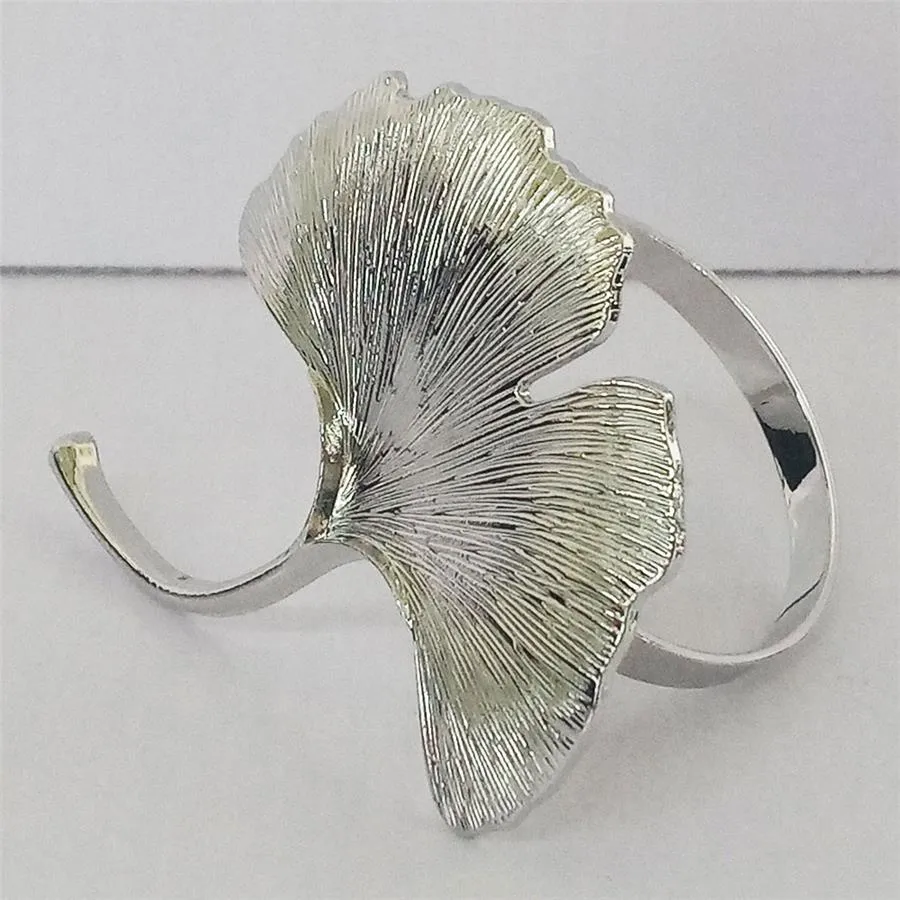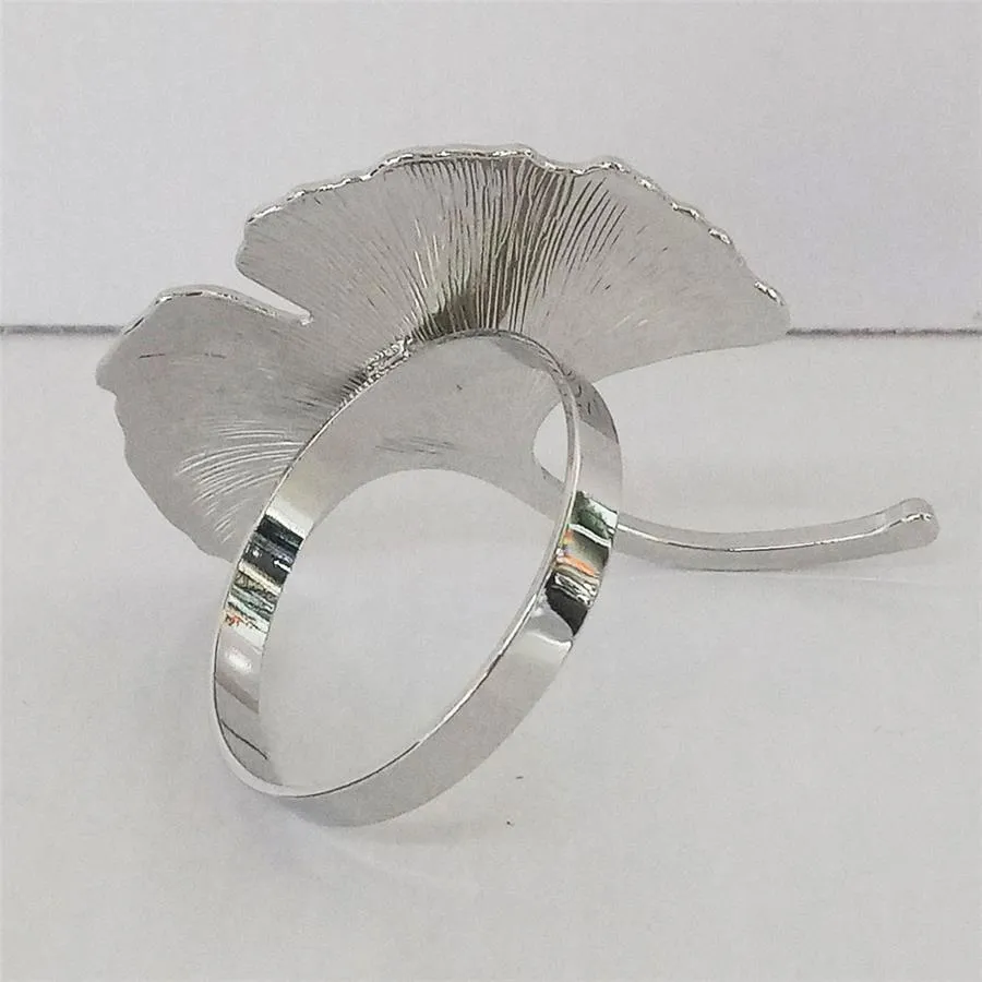 Juego de 4 Servilleteros diseño hoja tipo abanico plateado de 6×6.8×4.3cm