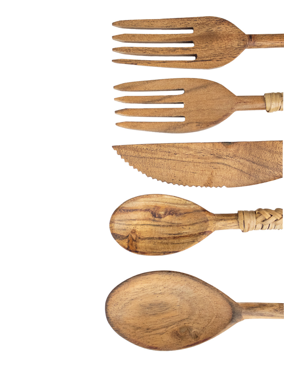 Un toque de elegancia natural y estilo rústico para tu mesa. Este set de cubiertos de madera y bambú con mango tejido, con unas dimensiones de 22.5x4x1.5cm, es la pieza perfecta para añadir un aire natural y artesanal a cualquier comida. Con un diseño detallado que muestra un acabado cálido de madera y bambú y un distintivo mango tejido, este set de 5 piezas crea un ambiente lleno de vida, ideal para complementar una decoración rústica, y sorprenderá a todos con su originalidad y su practicidad. Cuidado y Limpieza: