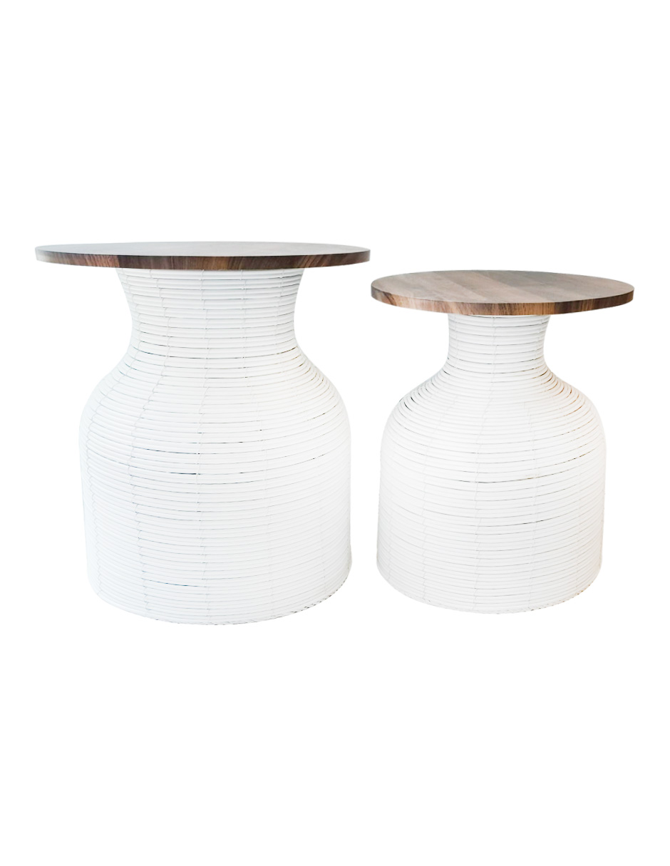 Juego de dos mesas tejidas natural cubiertas de madera de 40/45×40/45×45/49cm